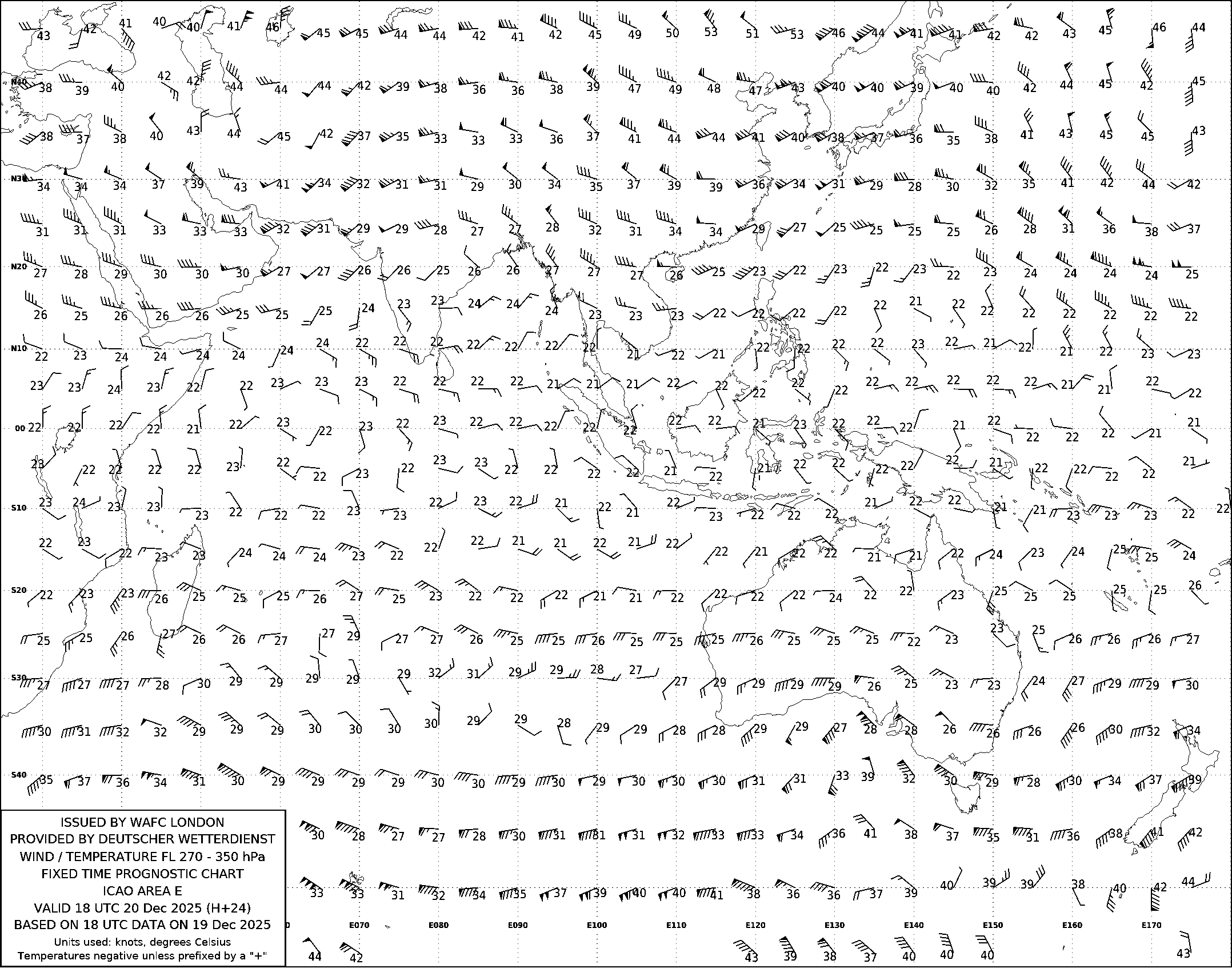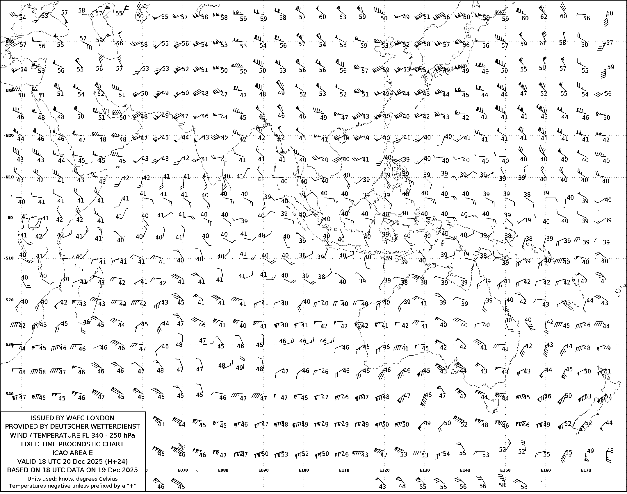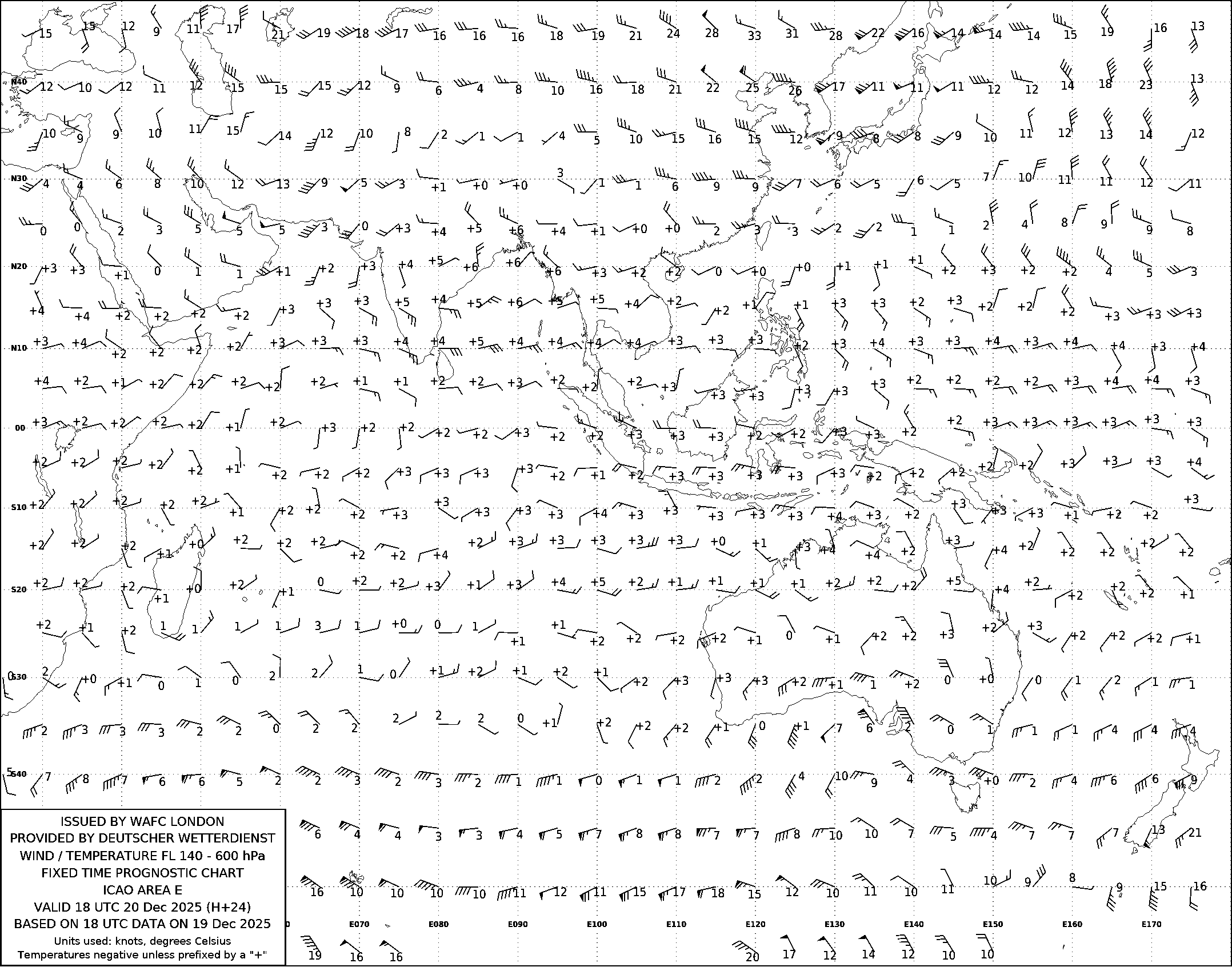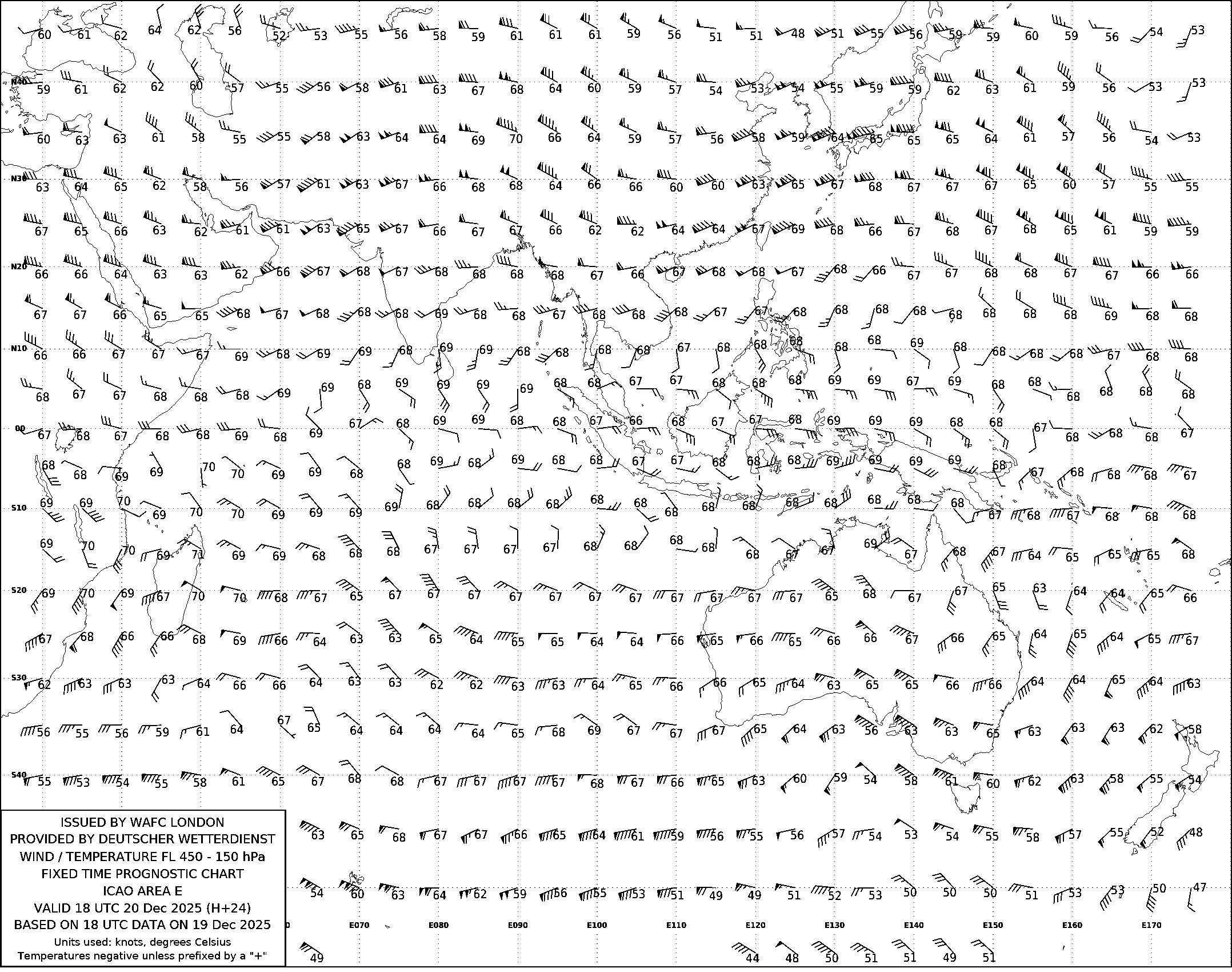 AREA E (Азия, Австралия и Индийский океан) по данным за 18 UTC 19.12.2025