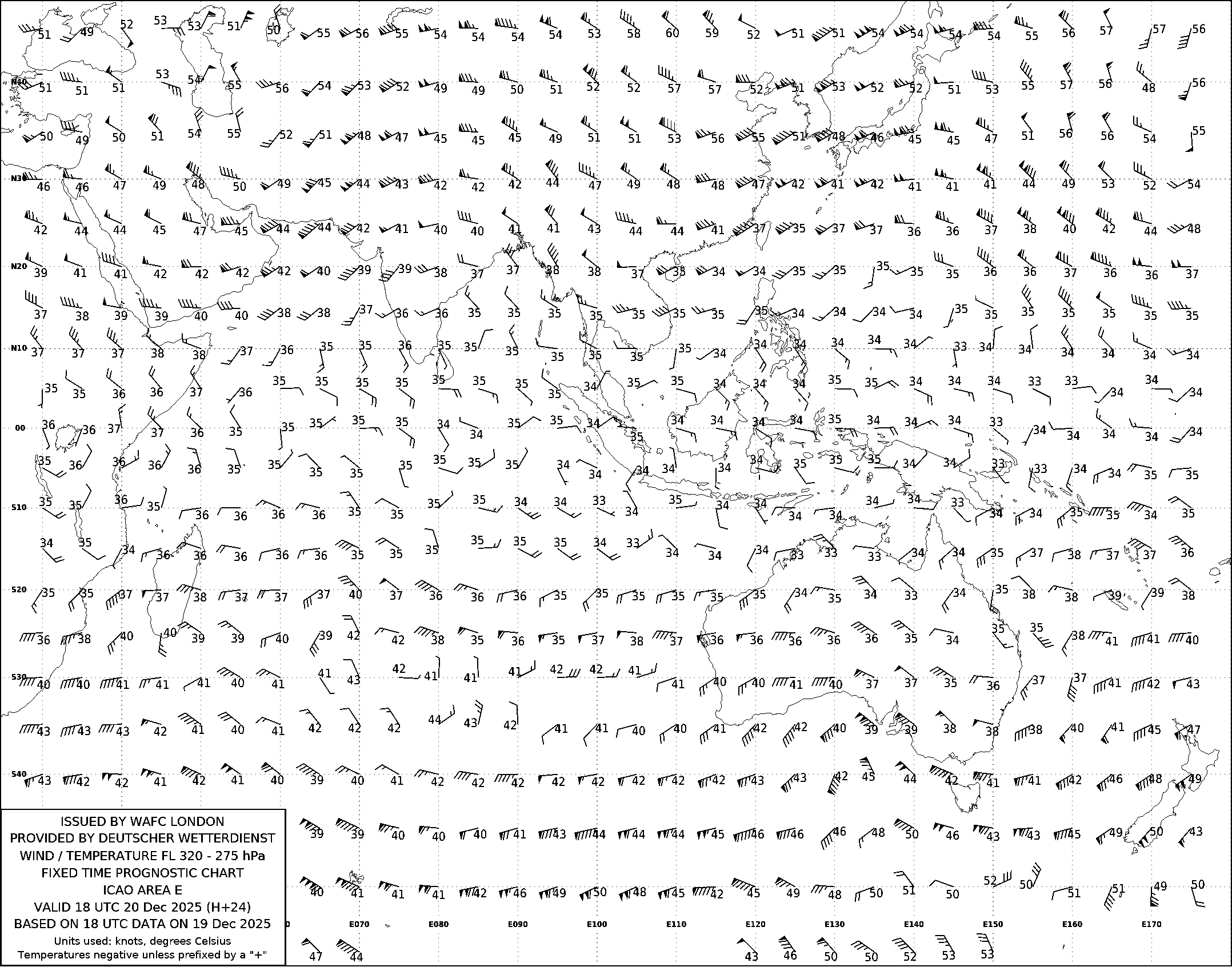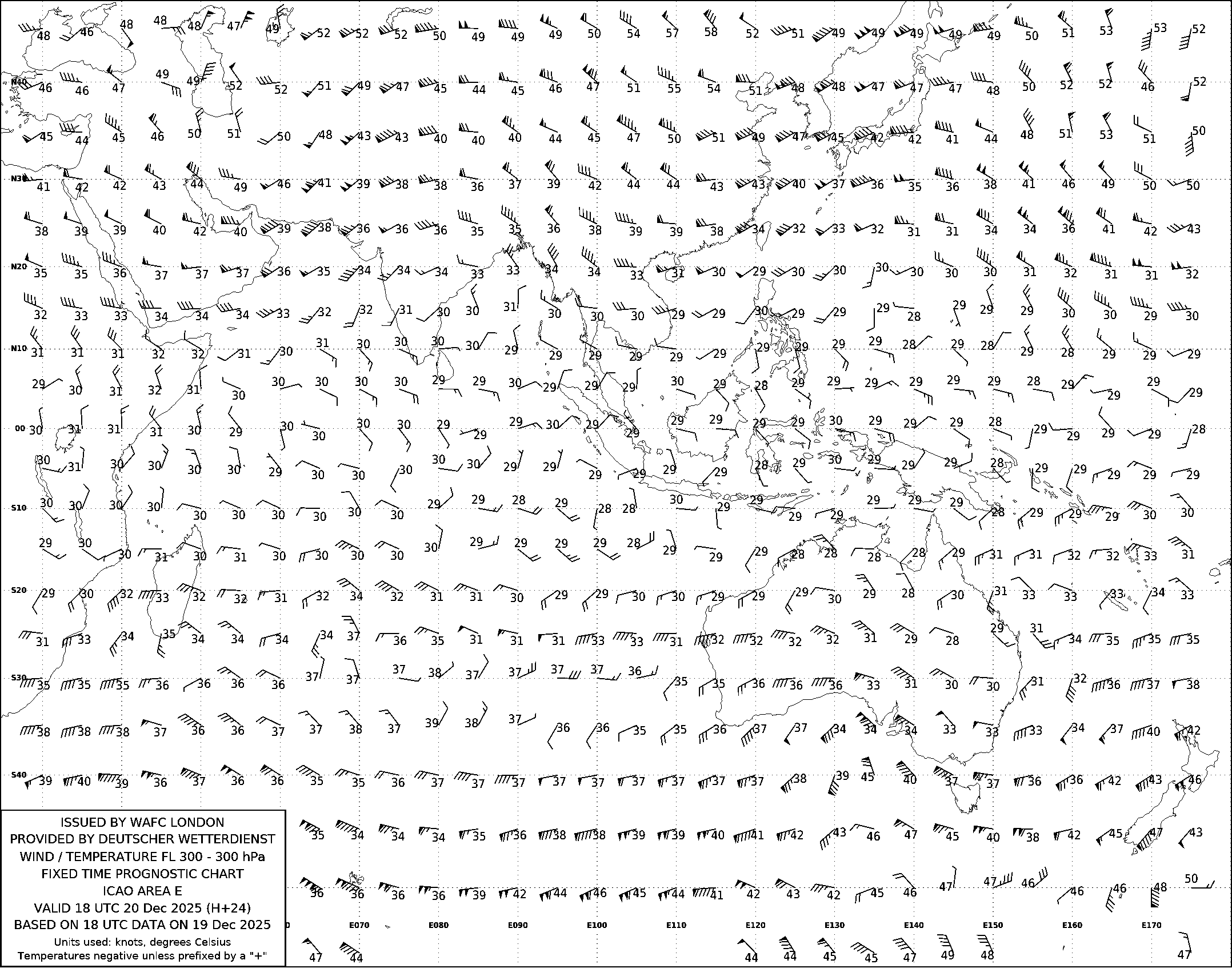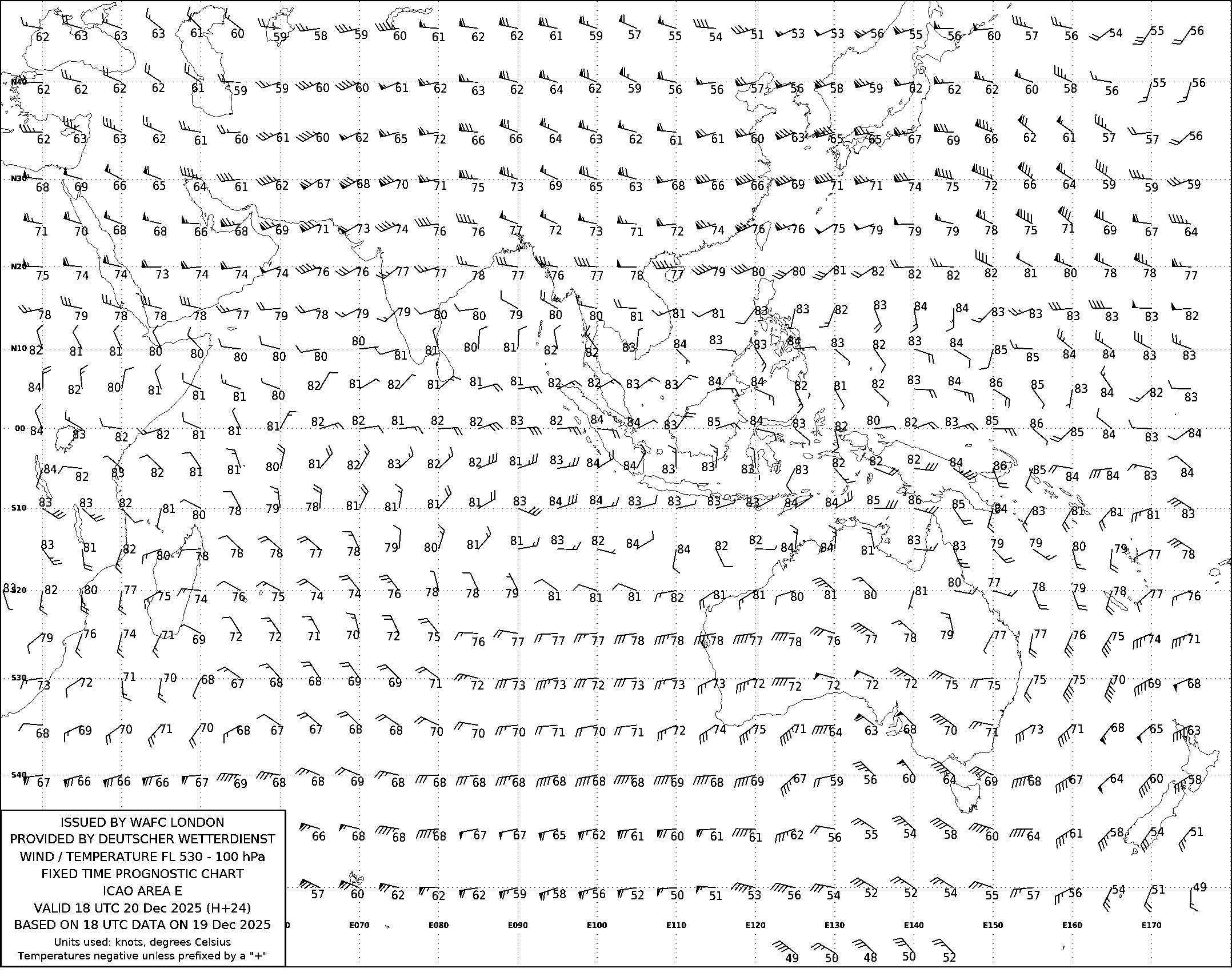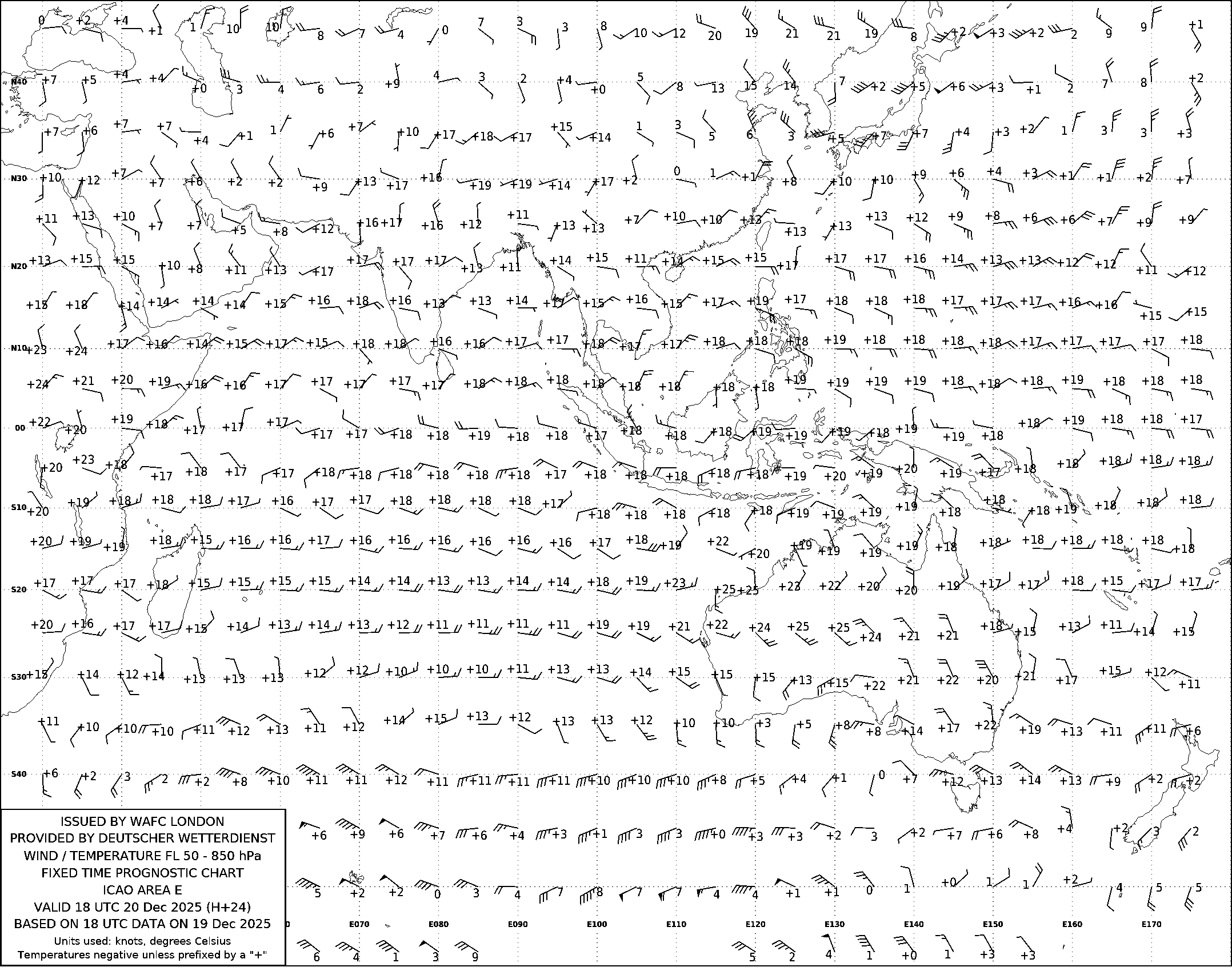 AREA E (Азия, Австралия и Индийский океан) по данным за 18 UTC 19.12.2025