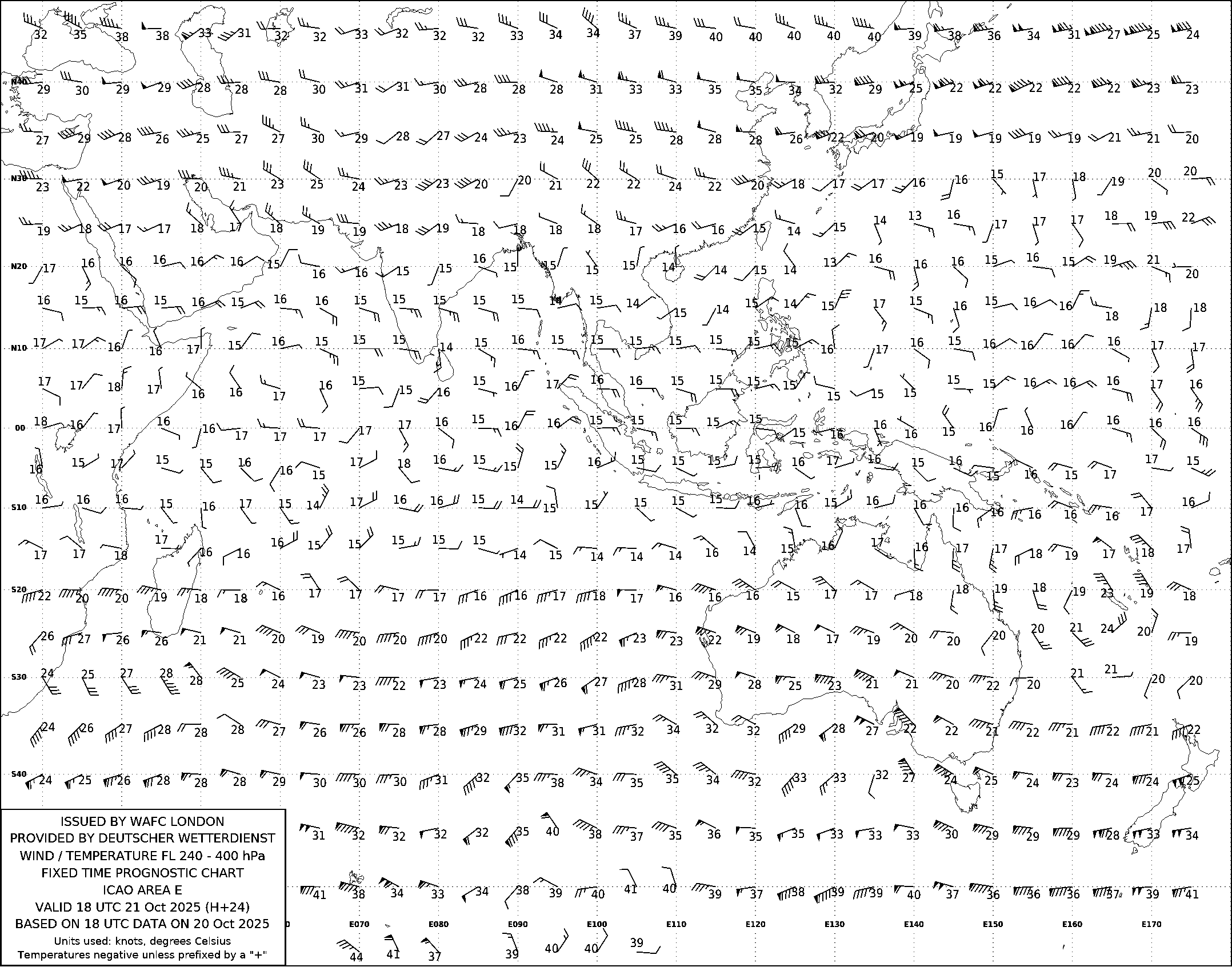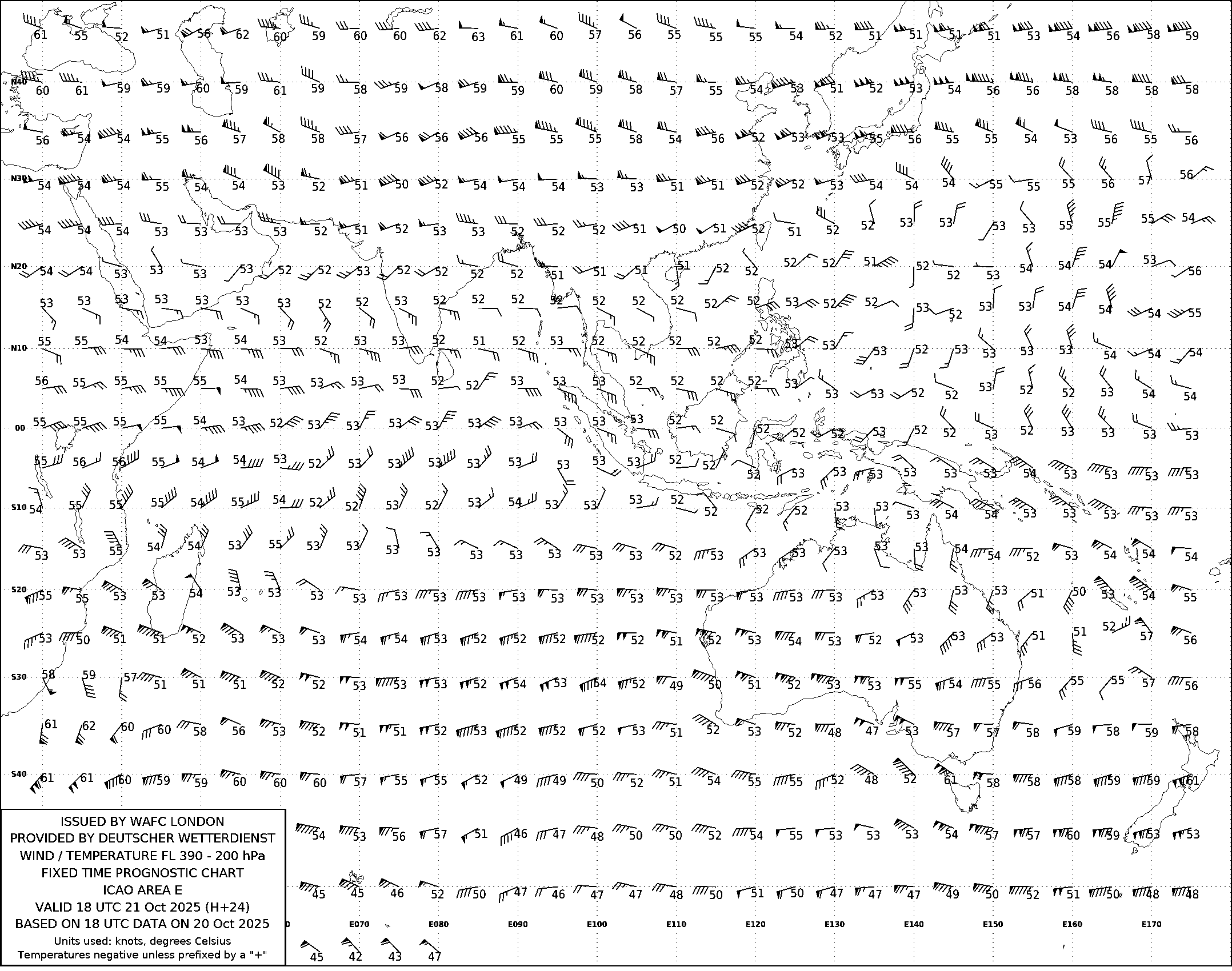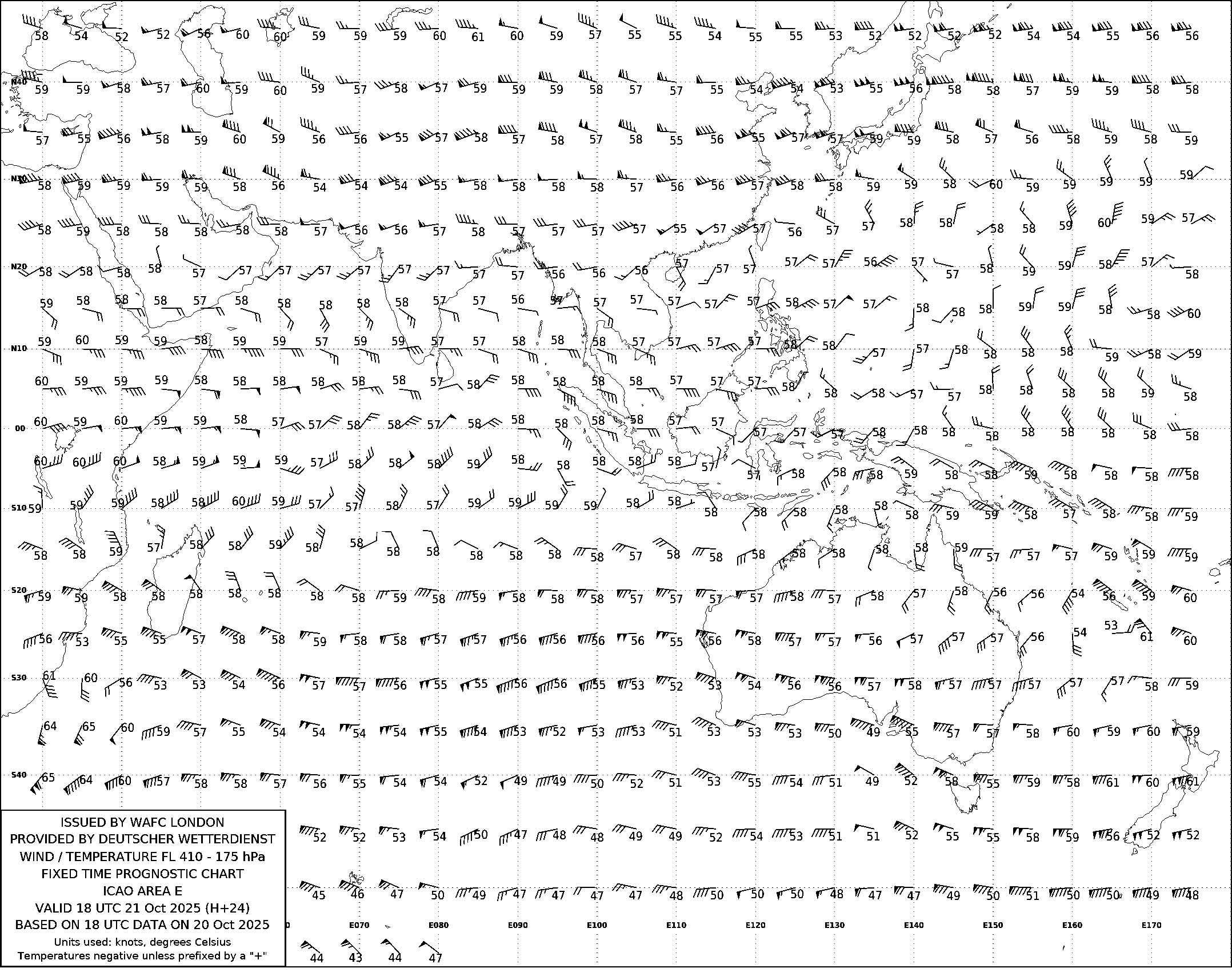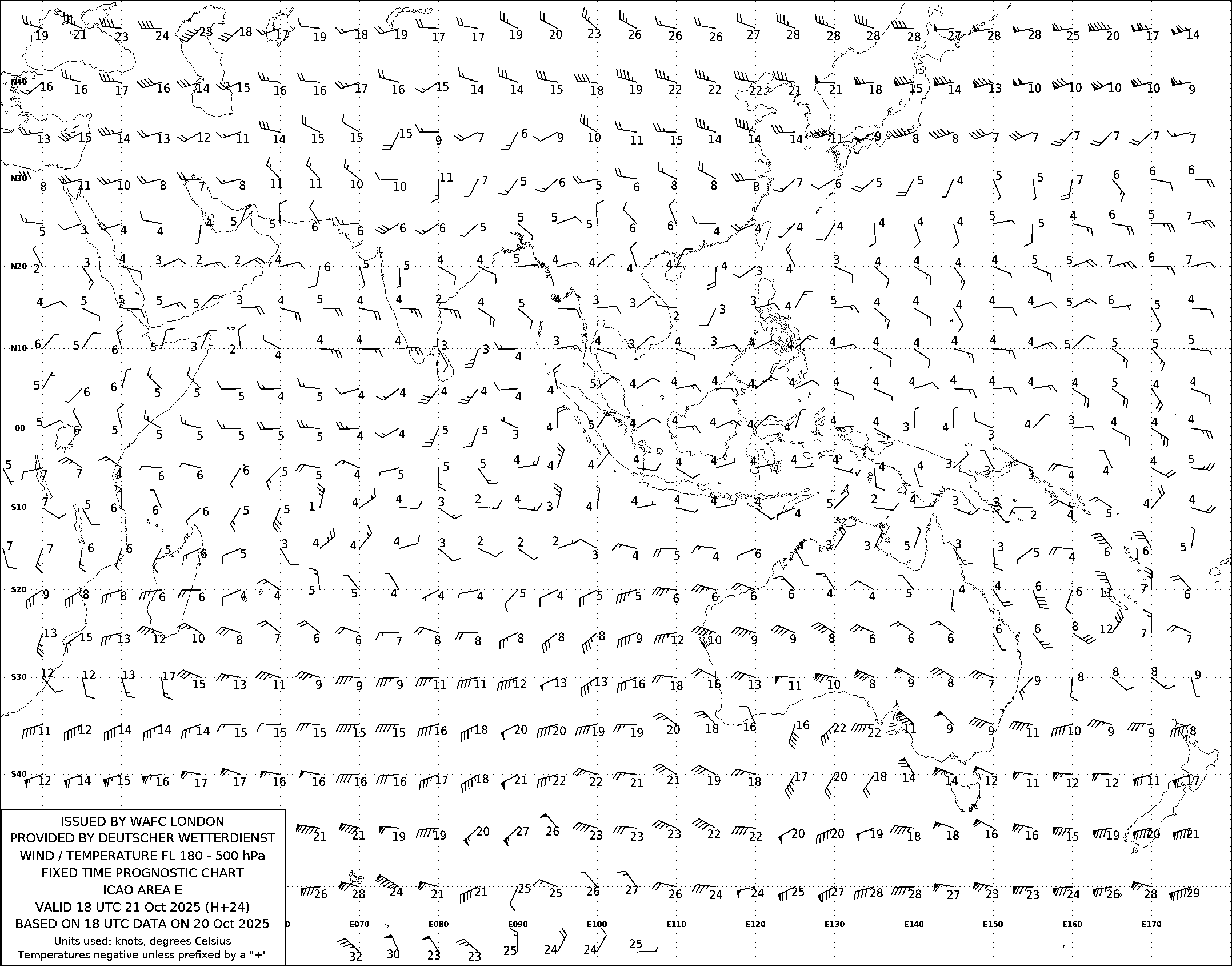 AREA E (Азия, Австралия и Индийский океан) по данным за 18 UTC 20.10.2025