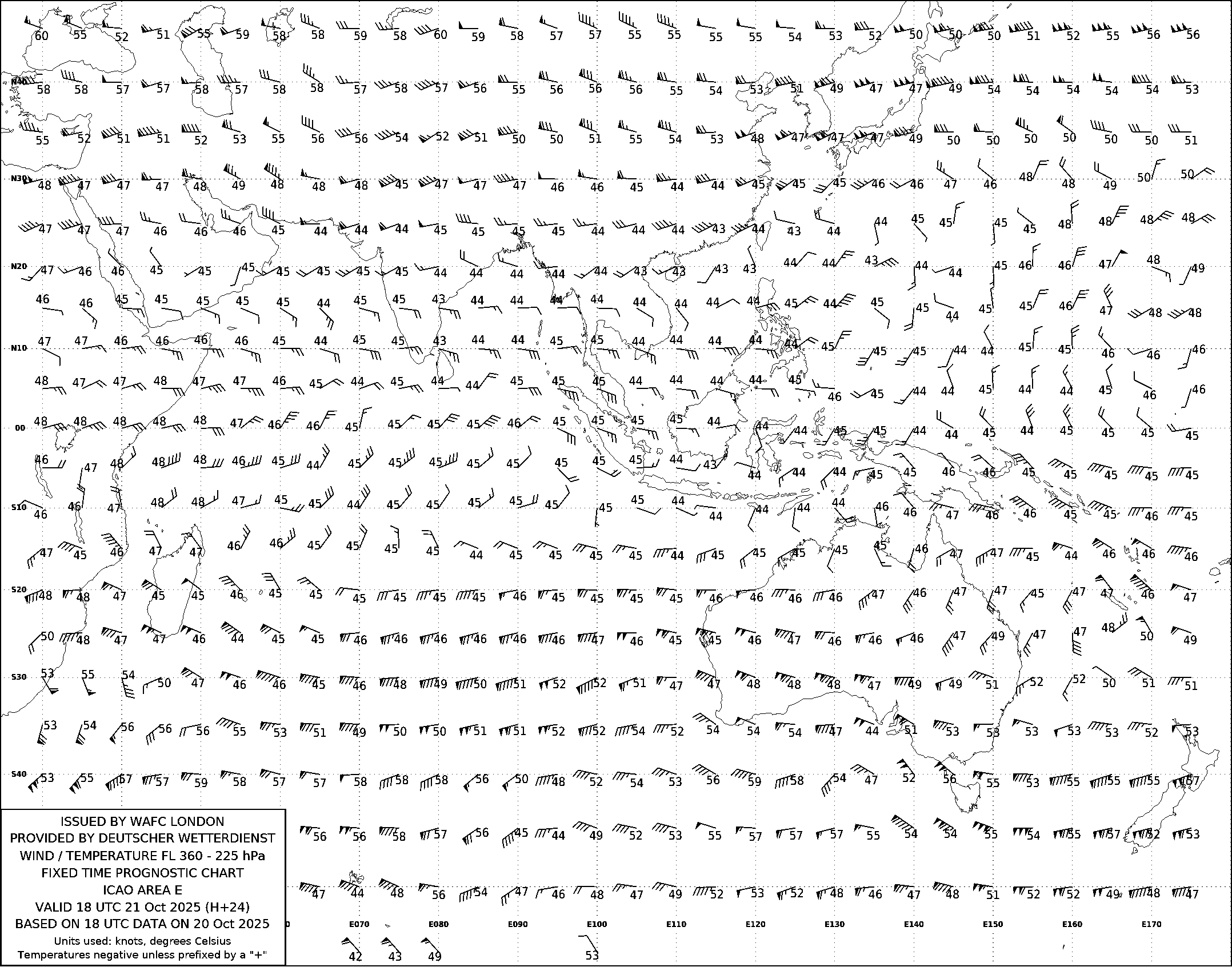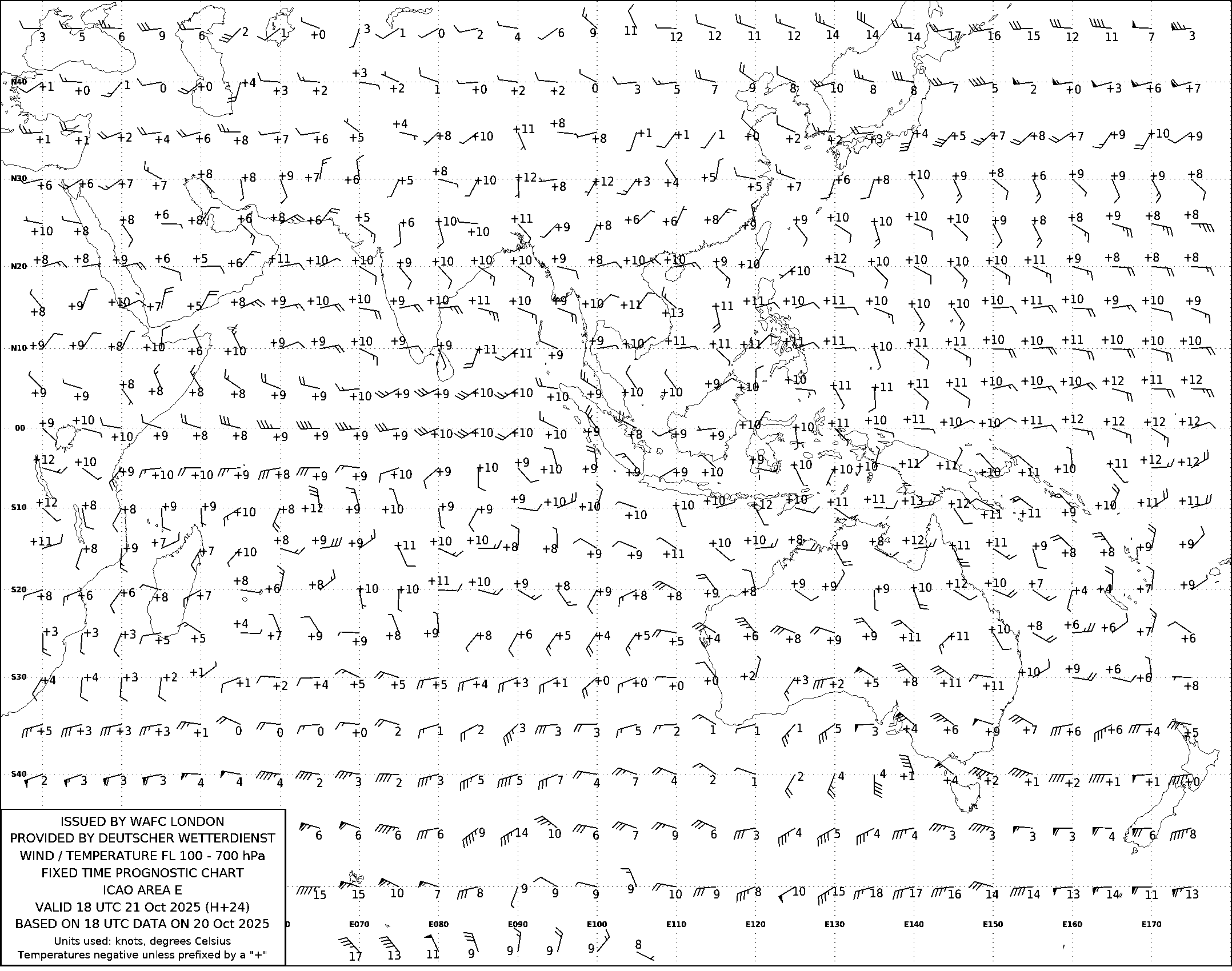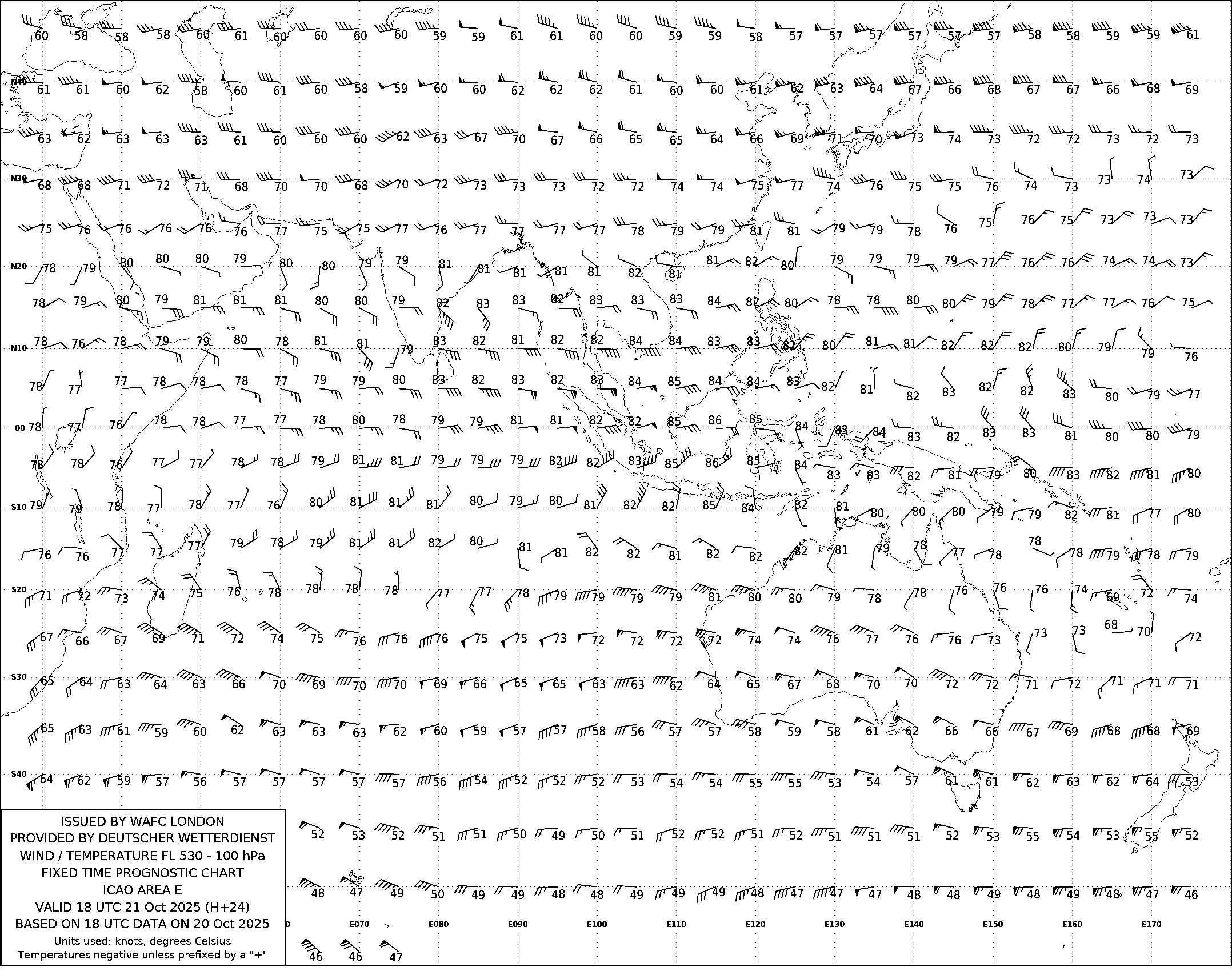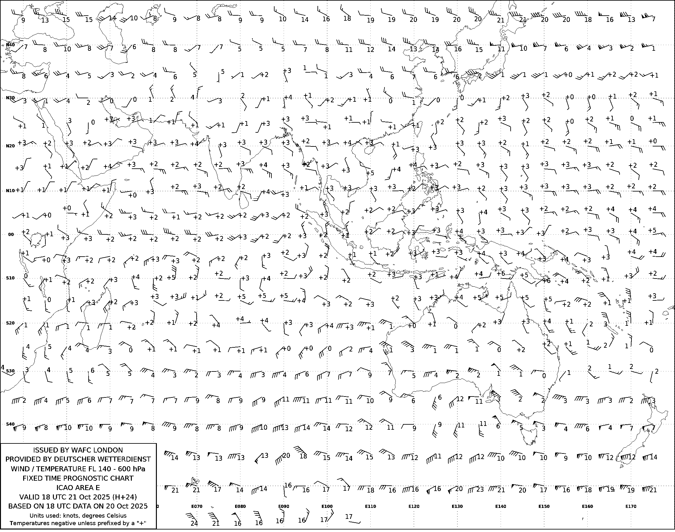 AREA E (Азия, Австралия и Индийский океан) по данным за 18 UTC 20.10.2025