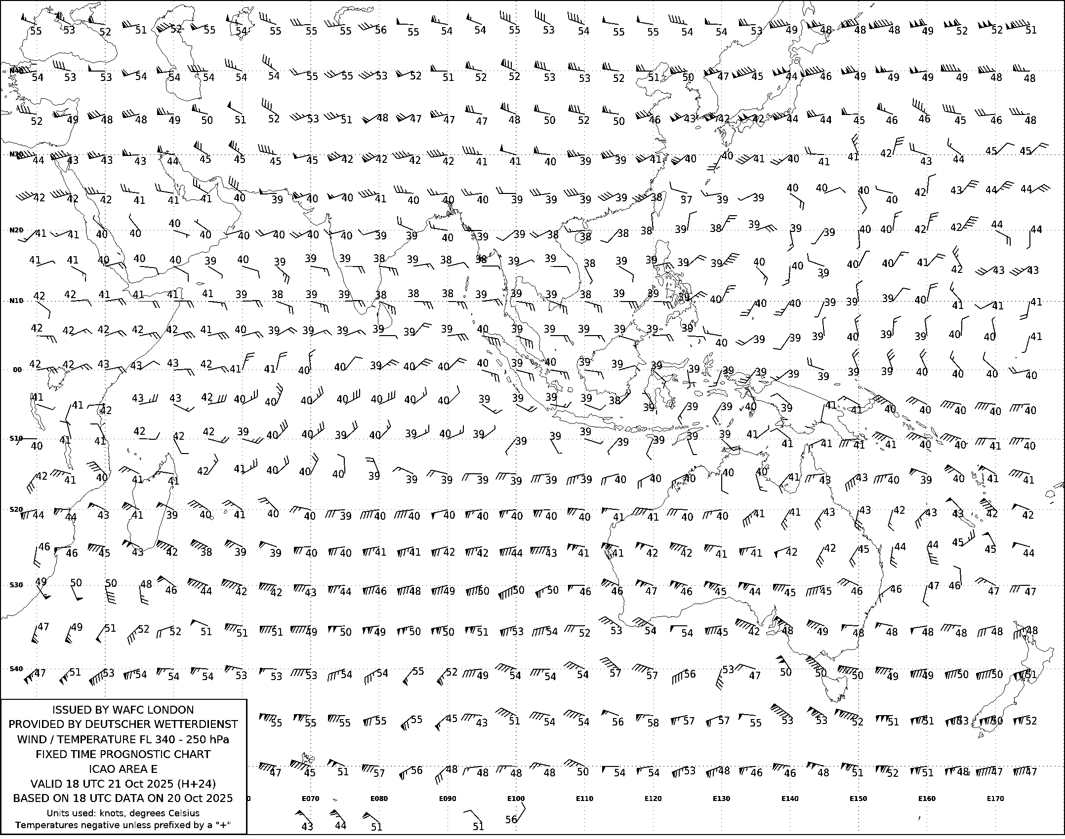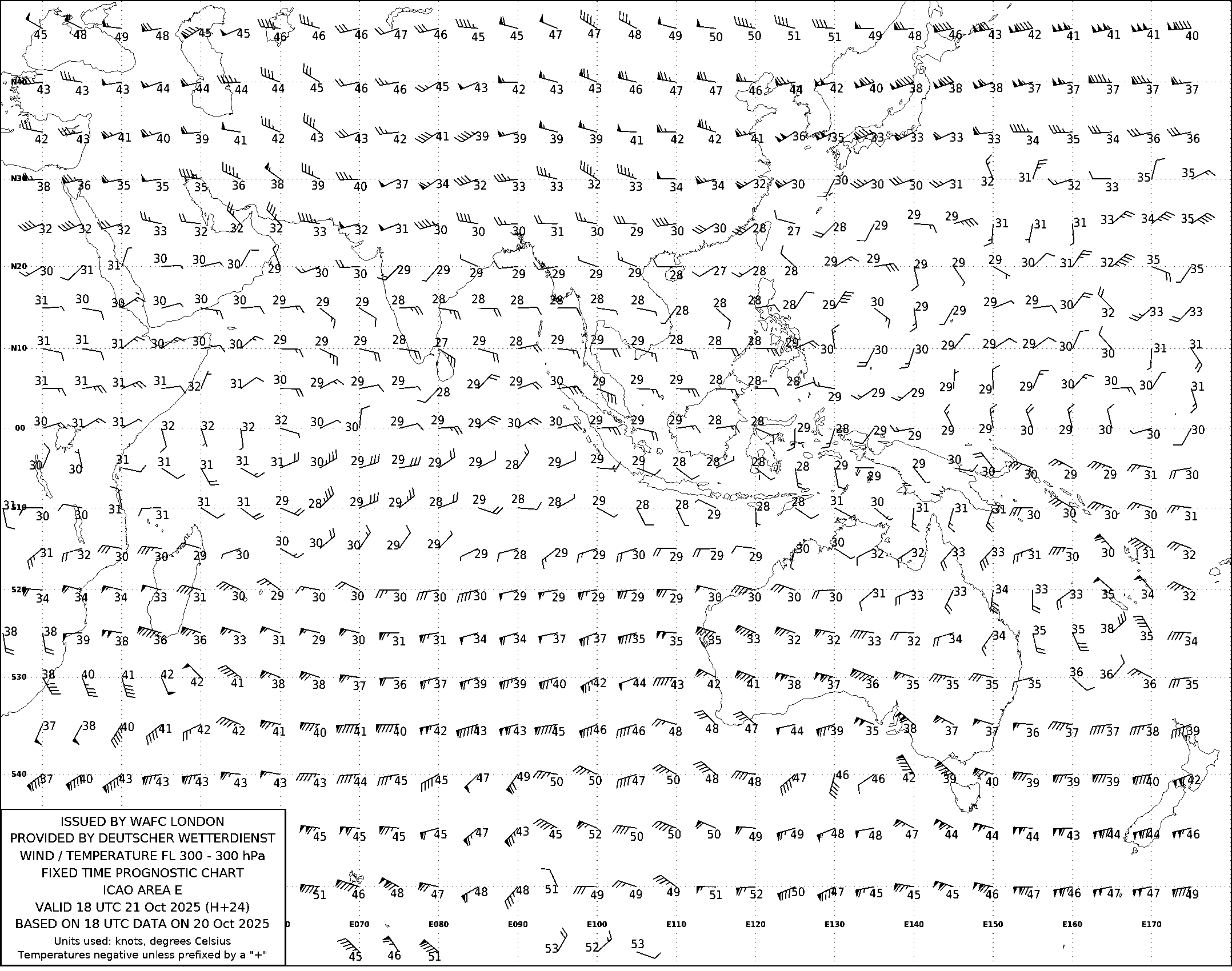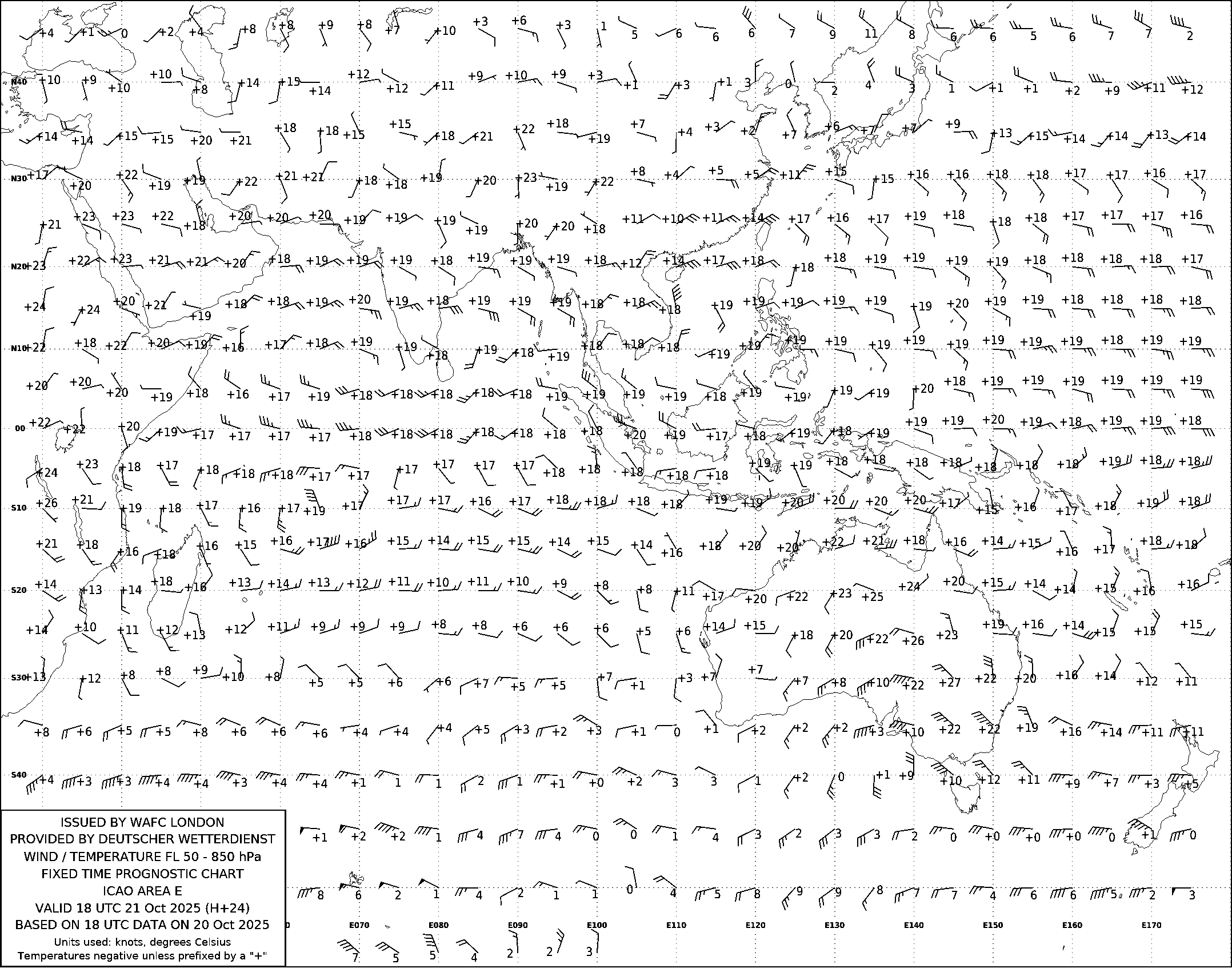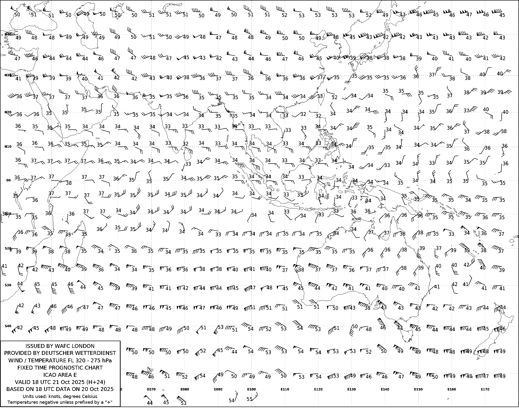 AREA E (Азия, Австралия и Индийский океан) по данным за 18 UTC 20.10.2025