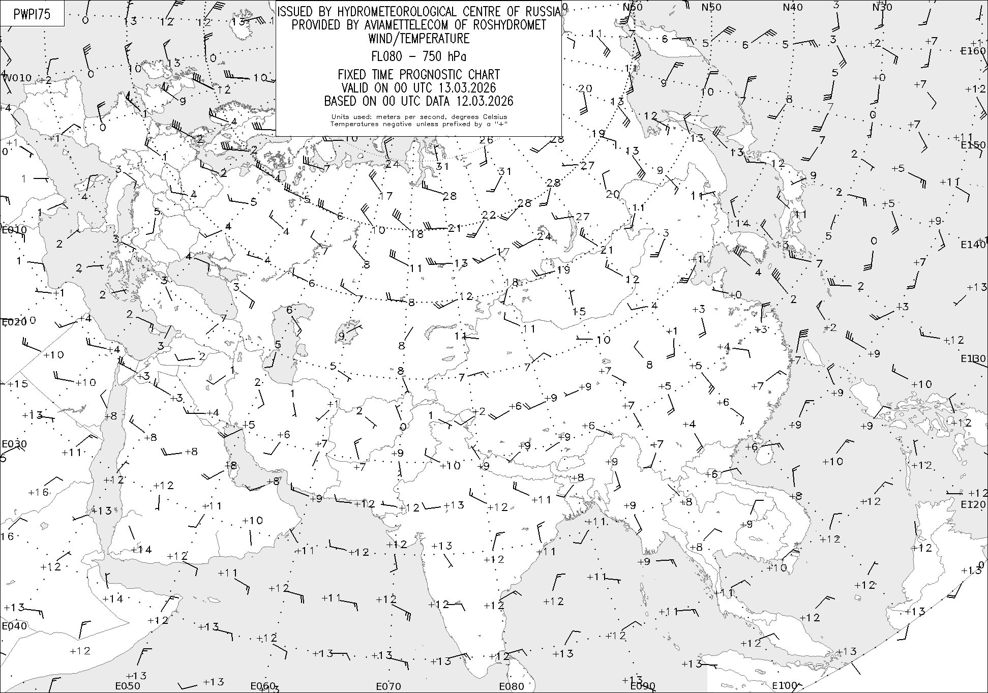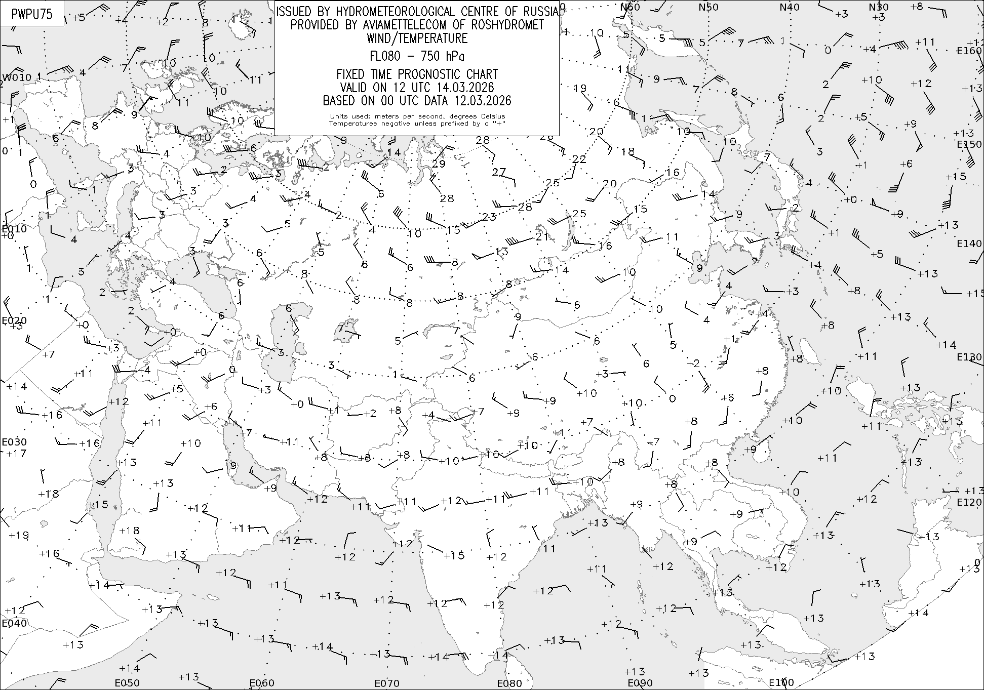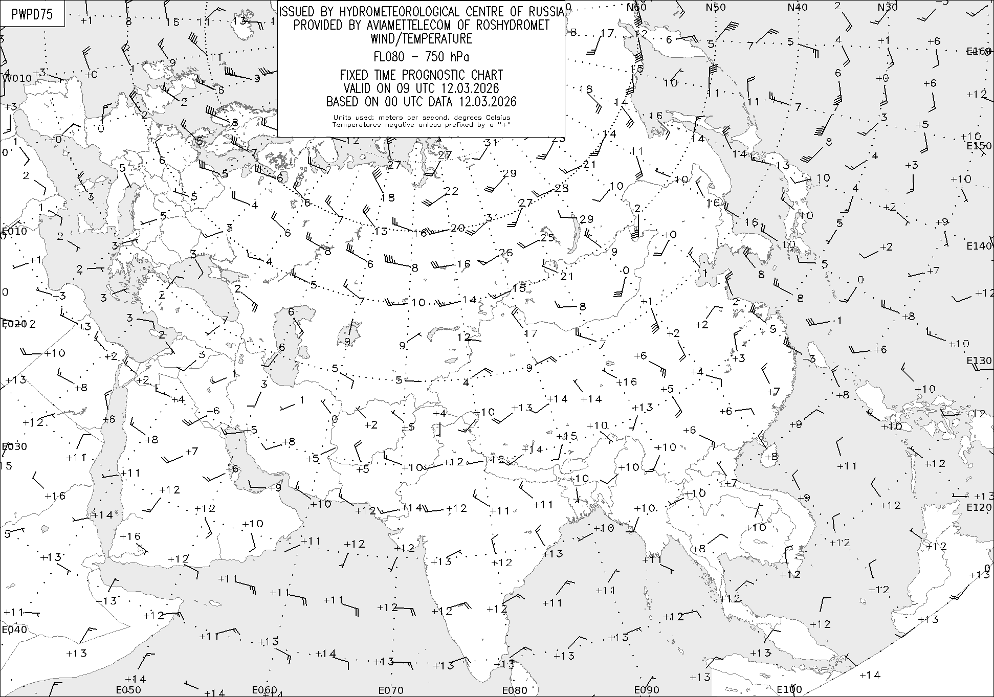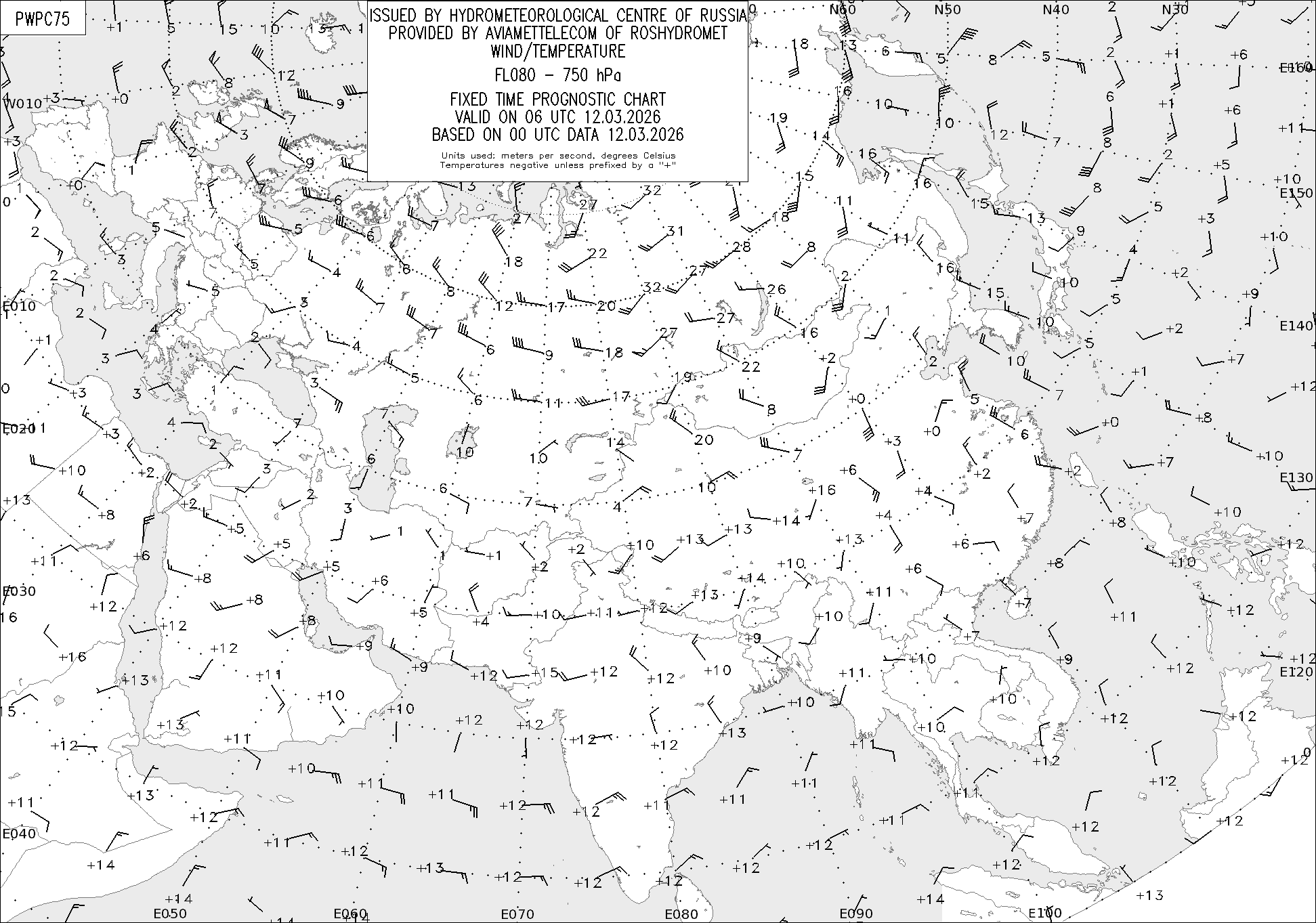 AREA P (Евразия) по данным за 00 UTC 12.03.2026
