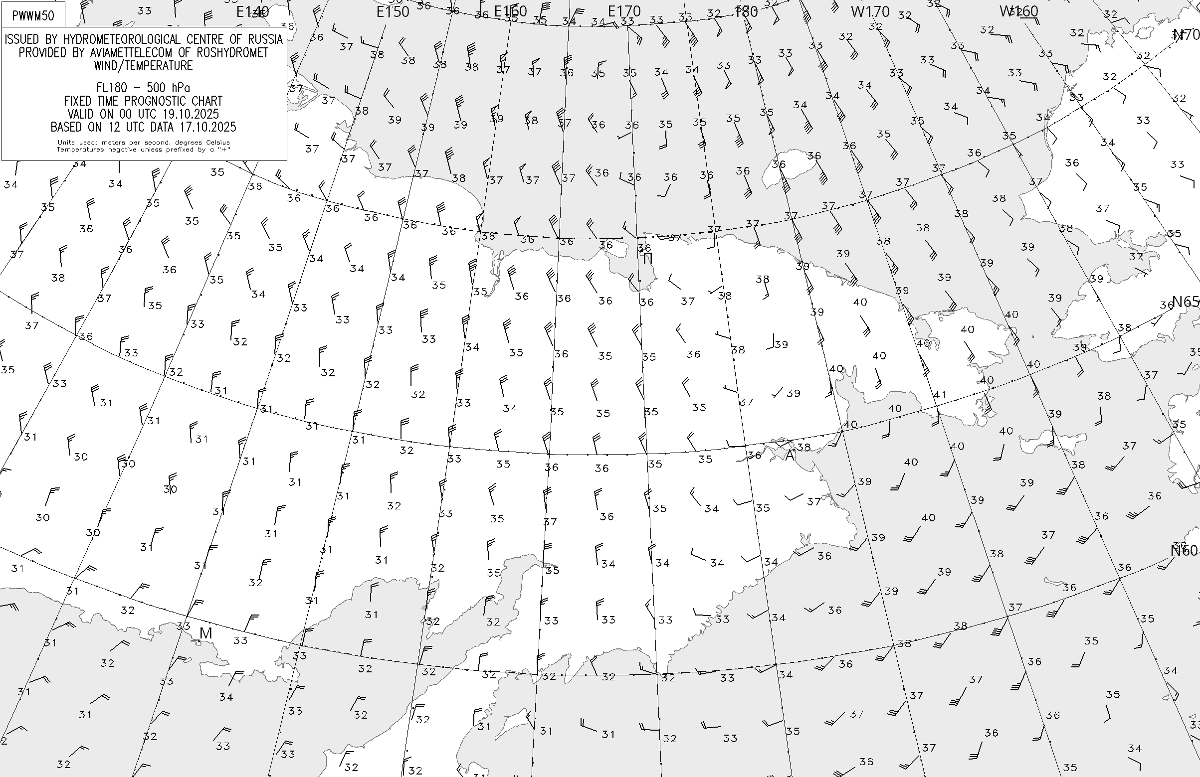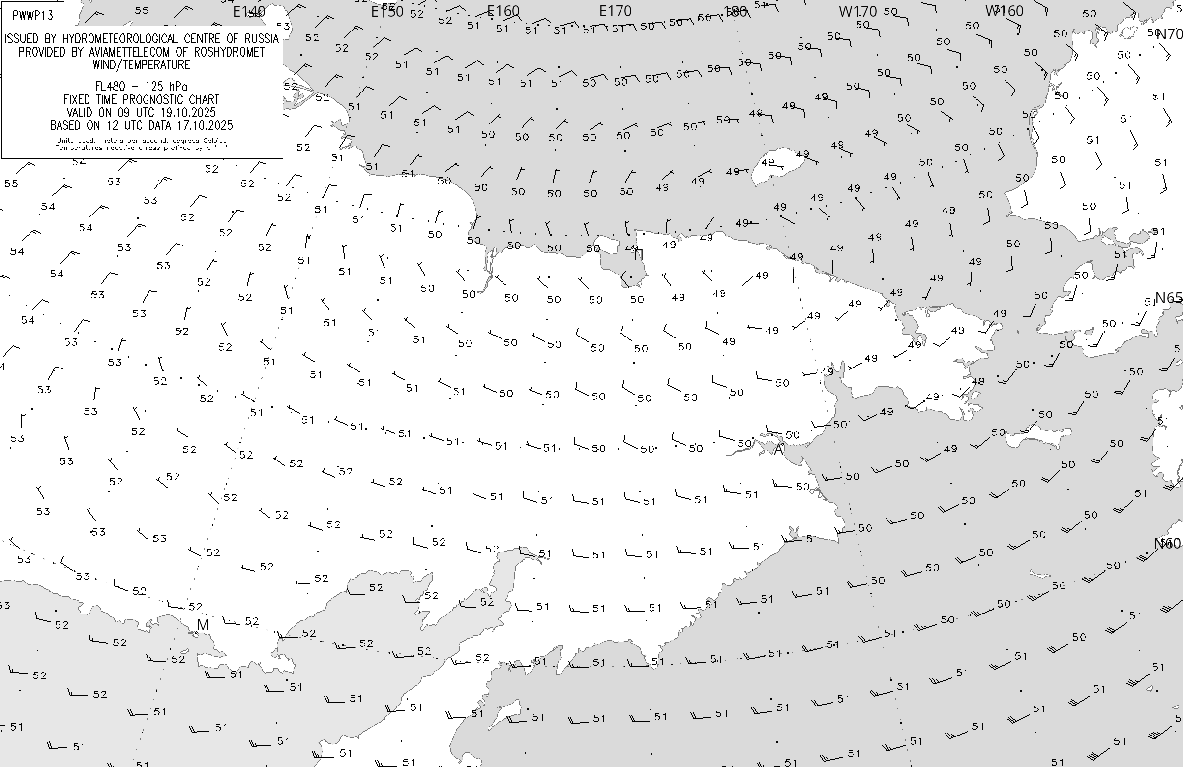 AREA W (Российская Федерация. Северо-Восток) по данным за 12 UTC 17.10.2025