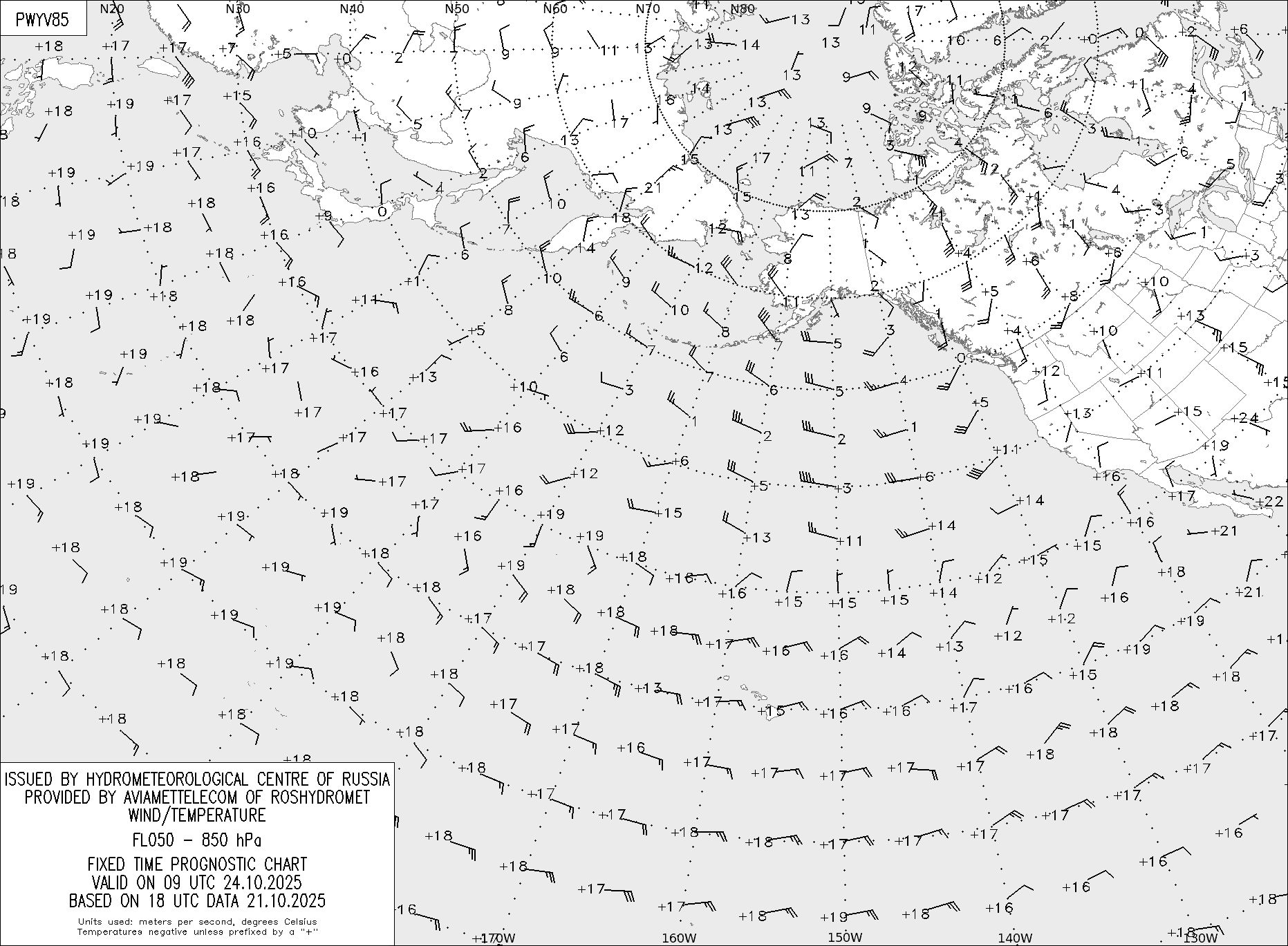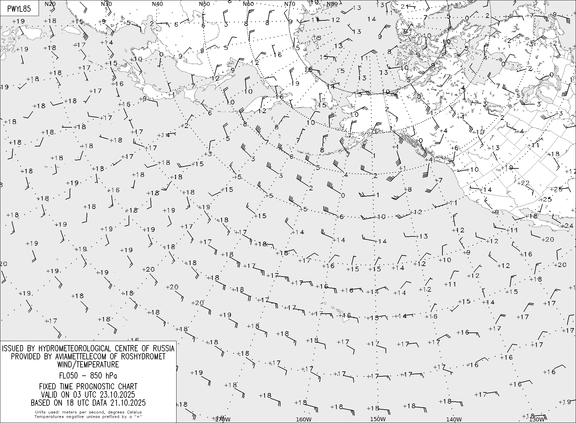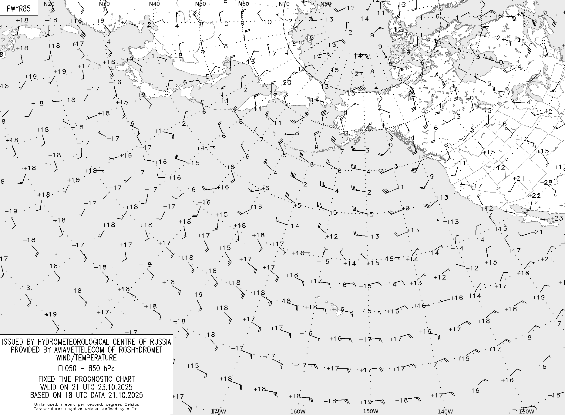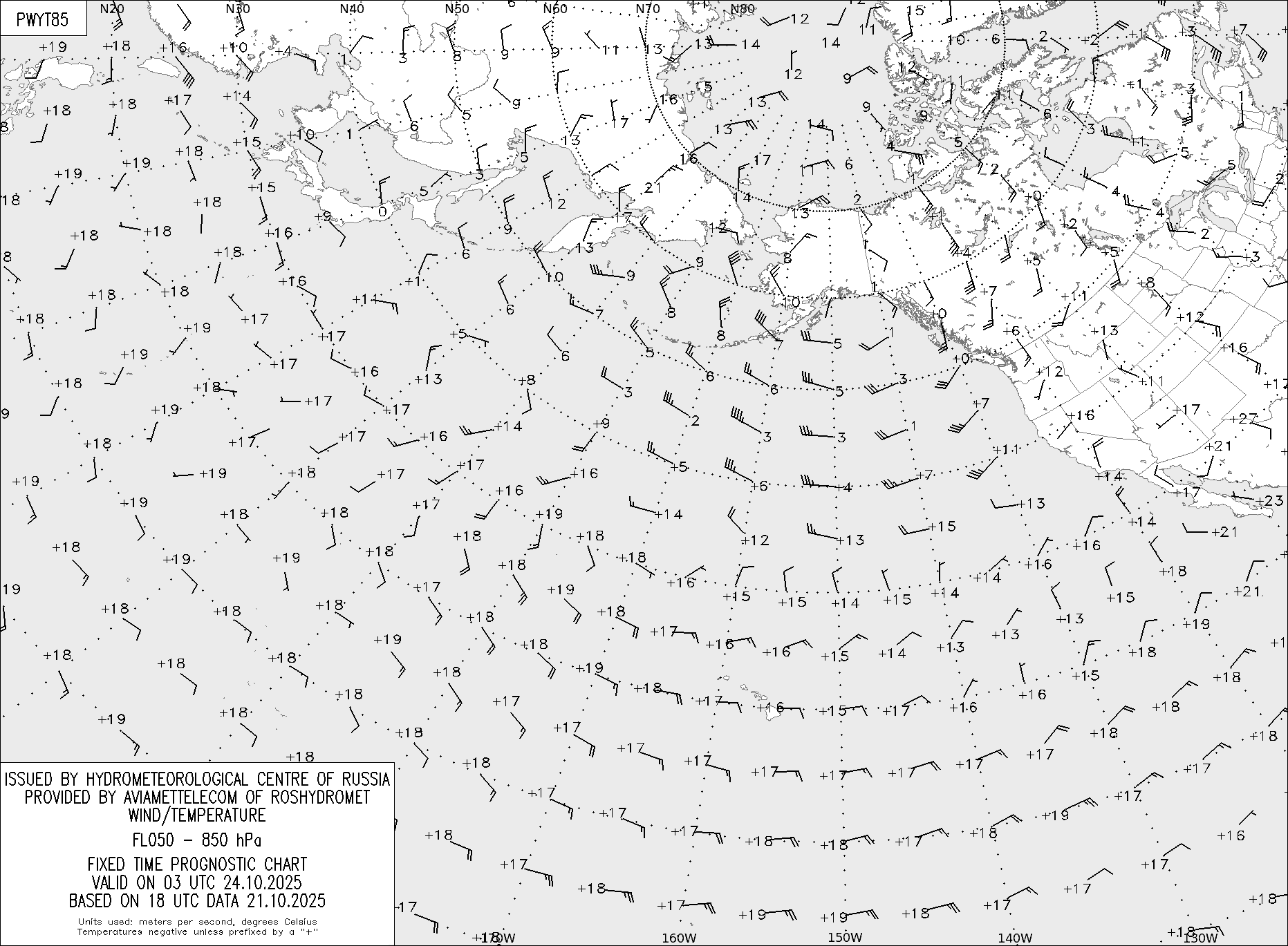 AREA Y (Восточная Евразия и Северная Америка) по данным за 18 UTC 21.10.2025