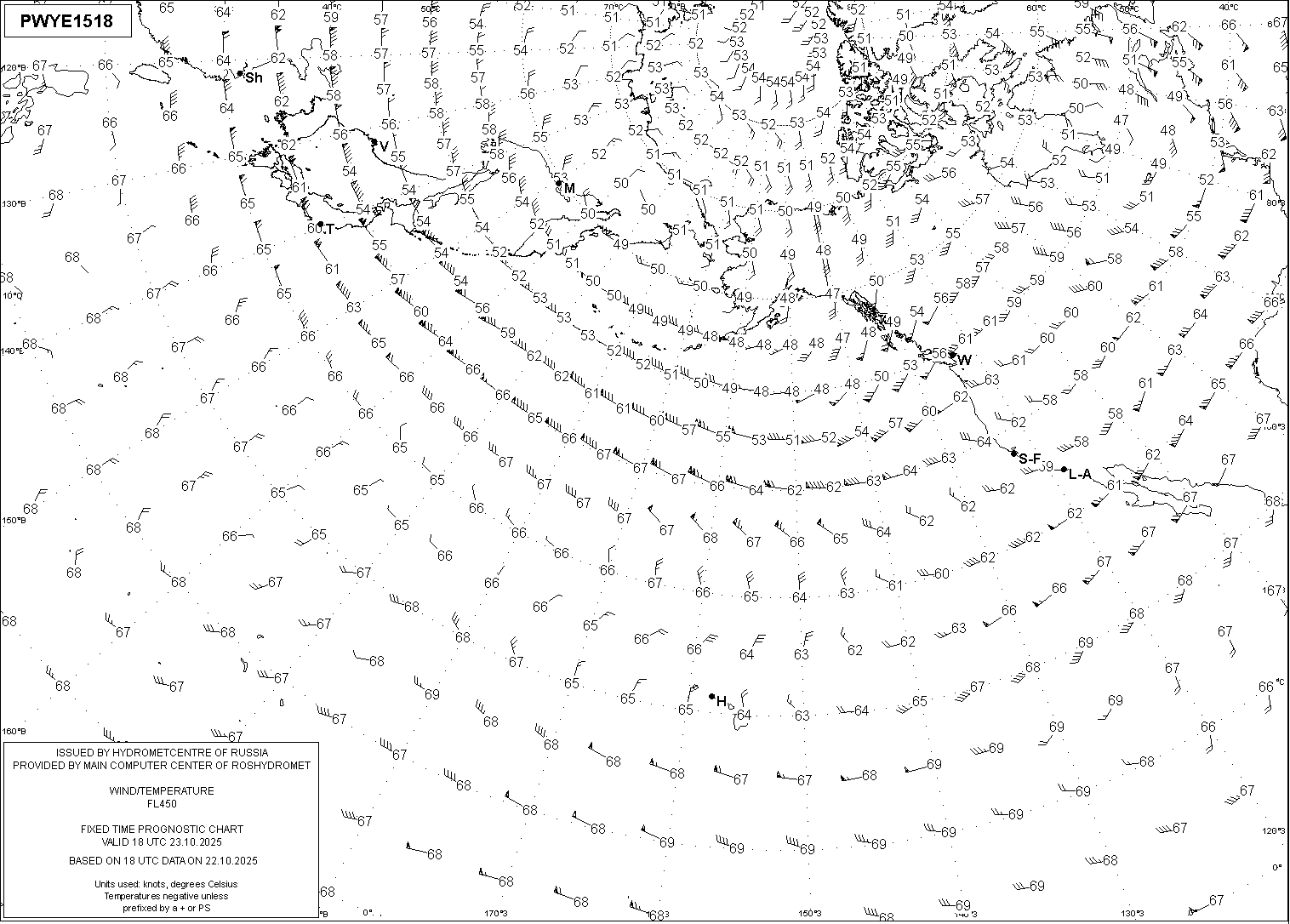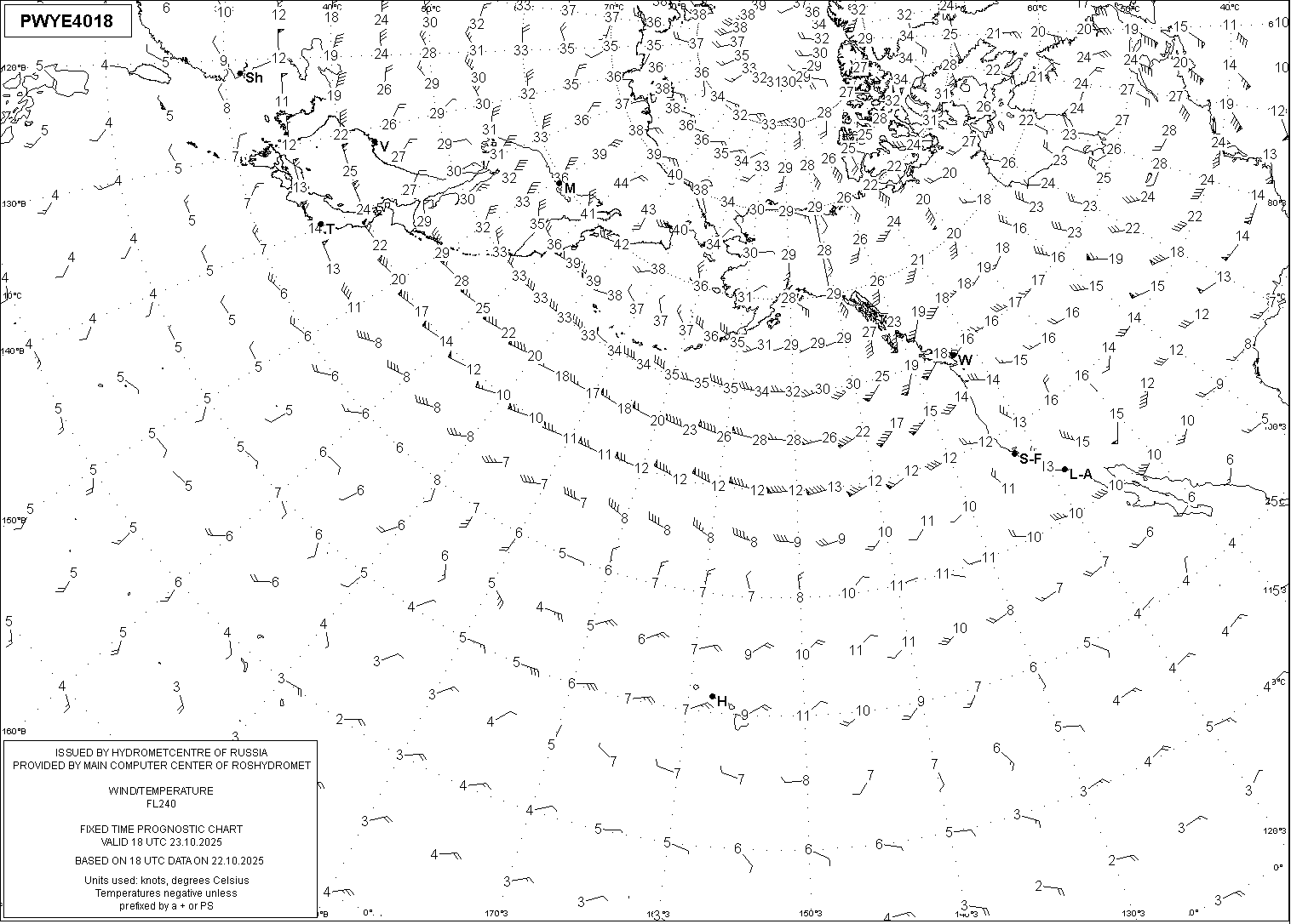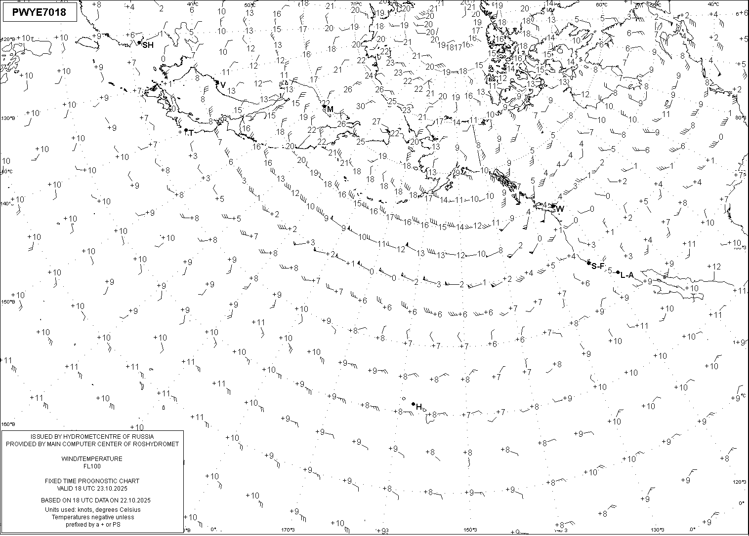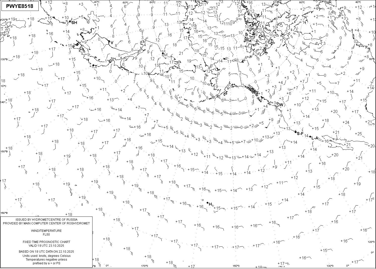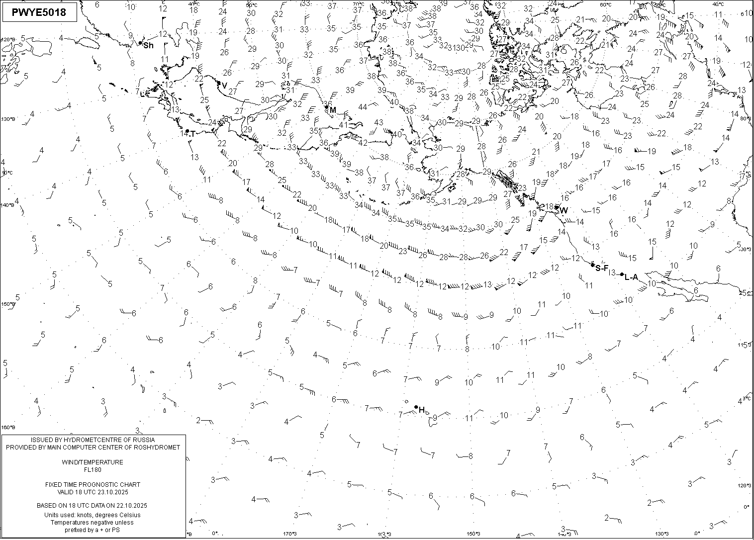 AREA Y (Восточная Евразия и Северная Америка) по данным за 18 UTC 22.10.2025