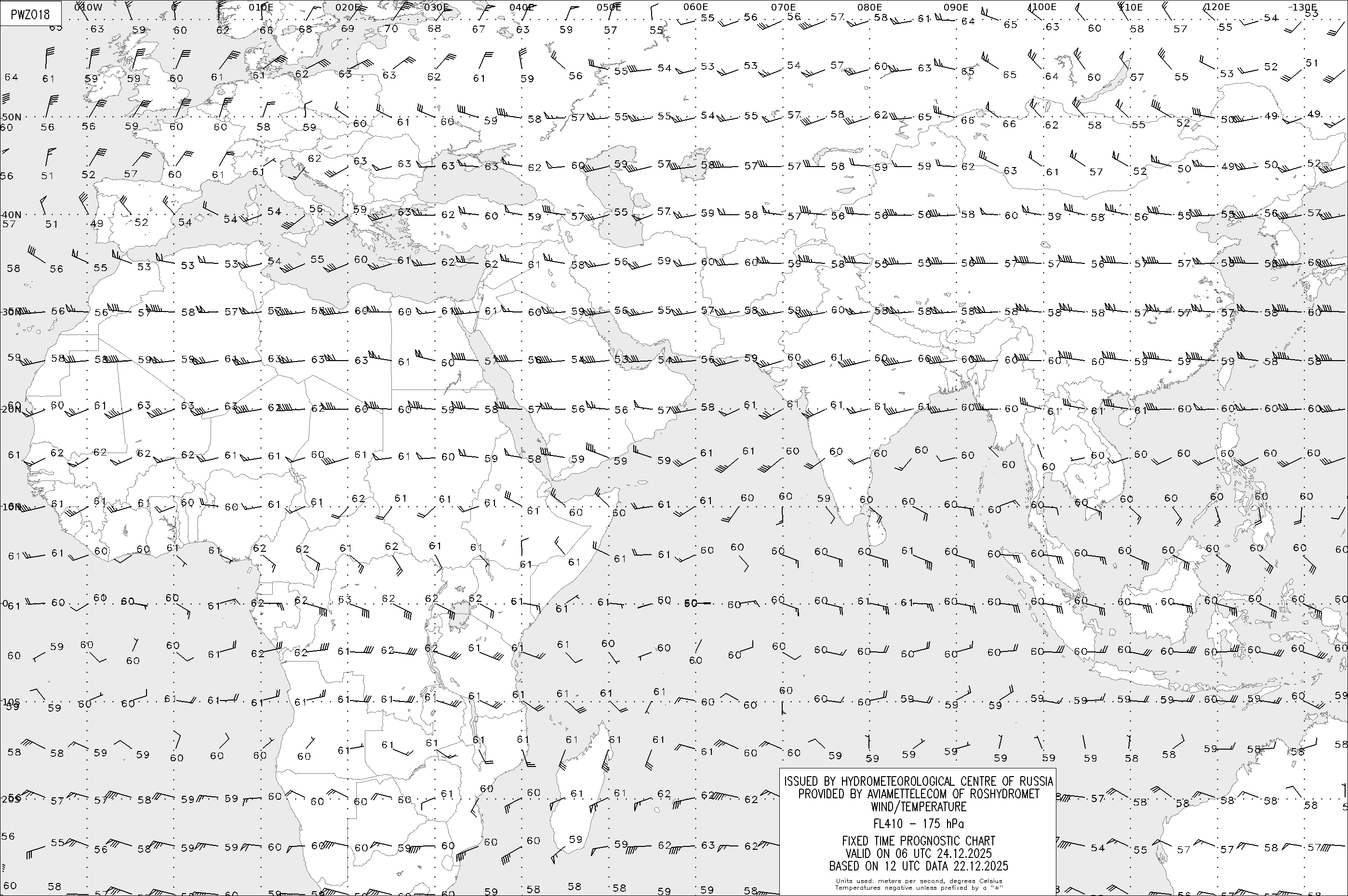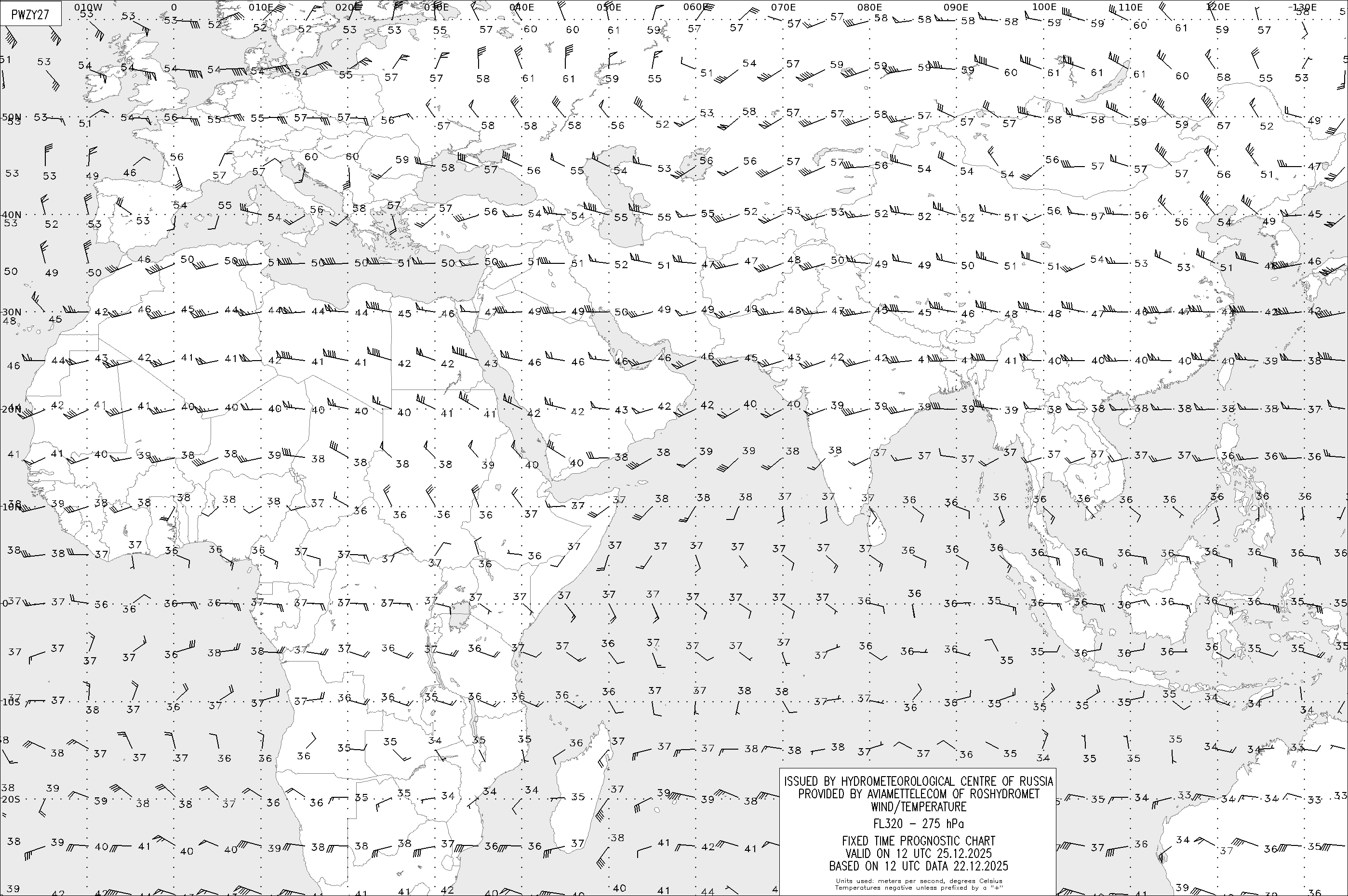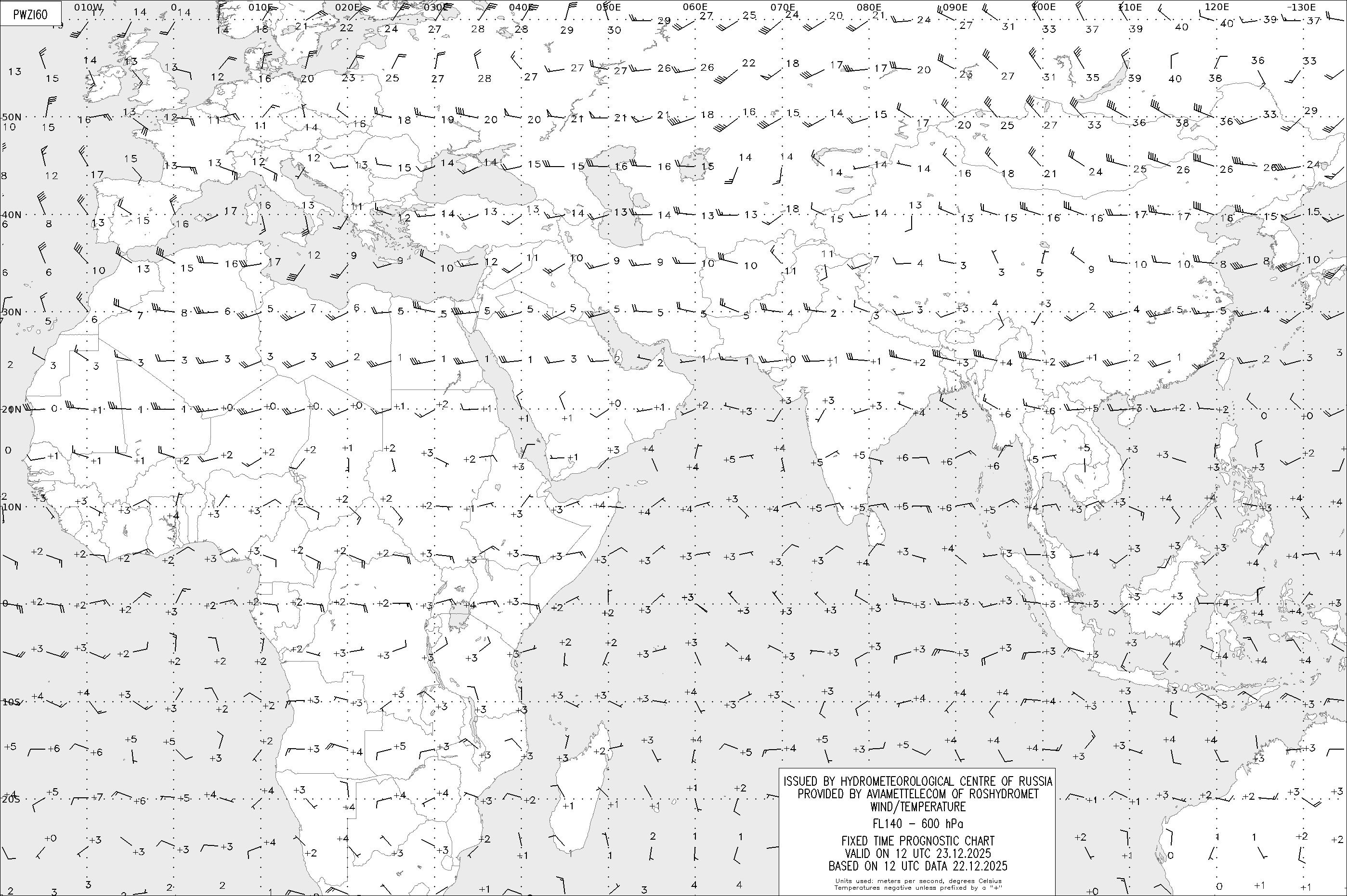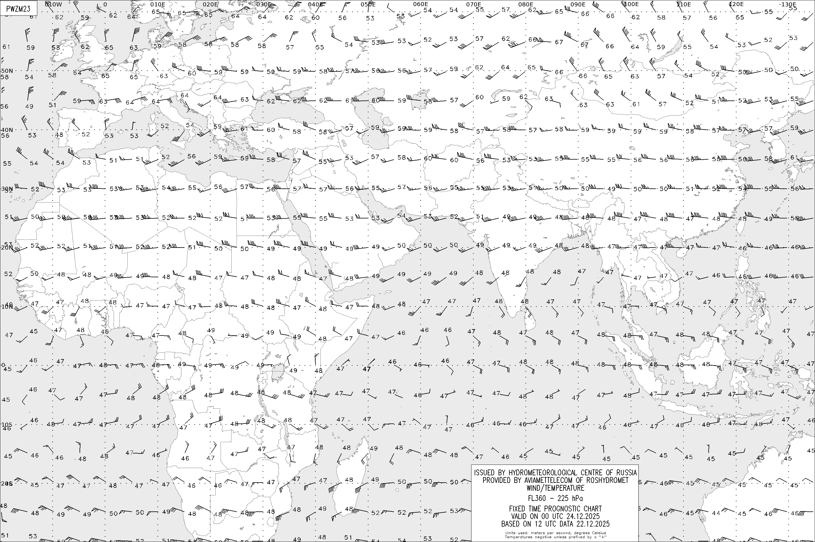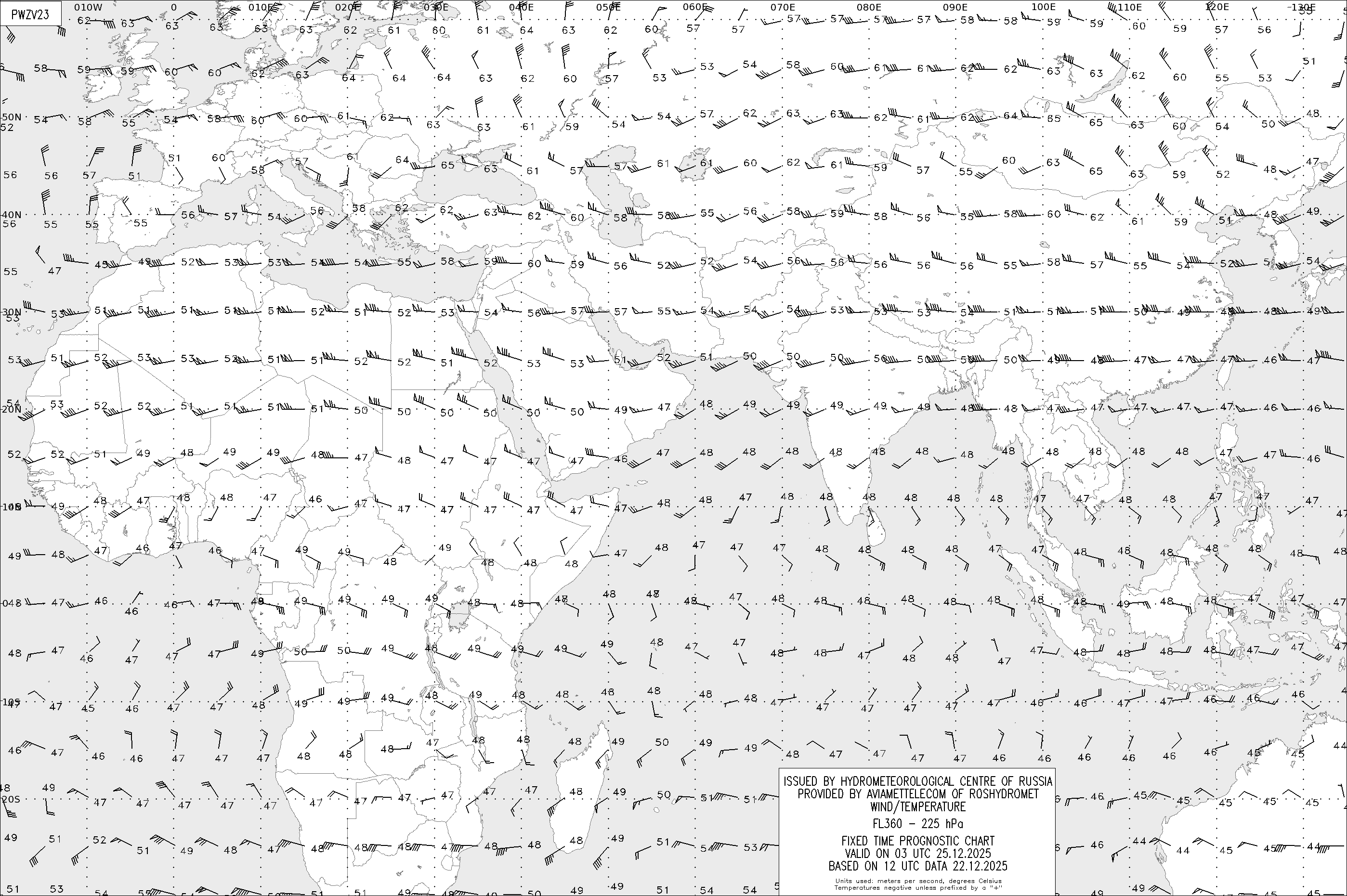 AREA Z (Евразия и Африка) по данным за 12 UTC 22.12.2025