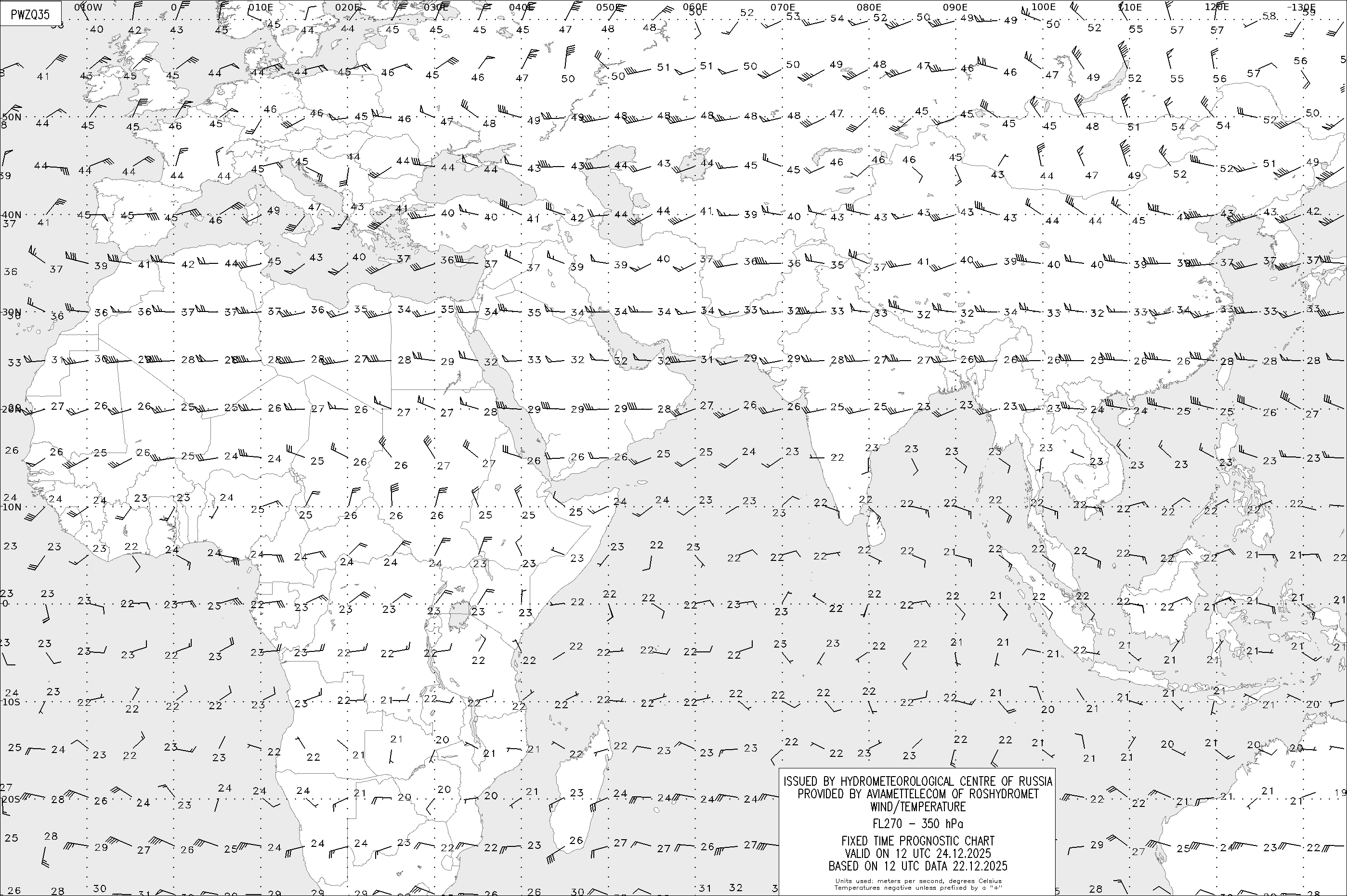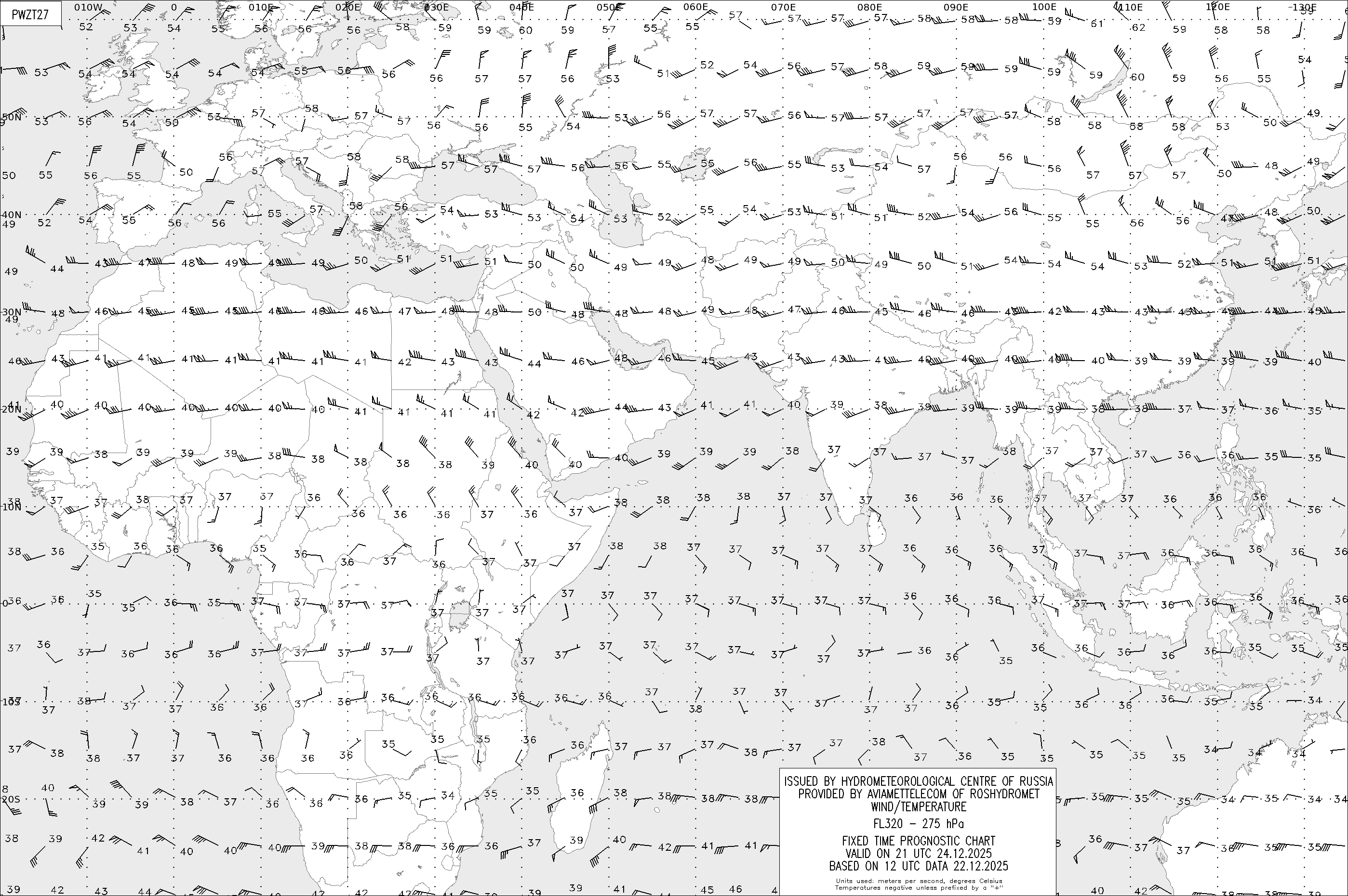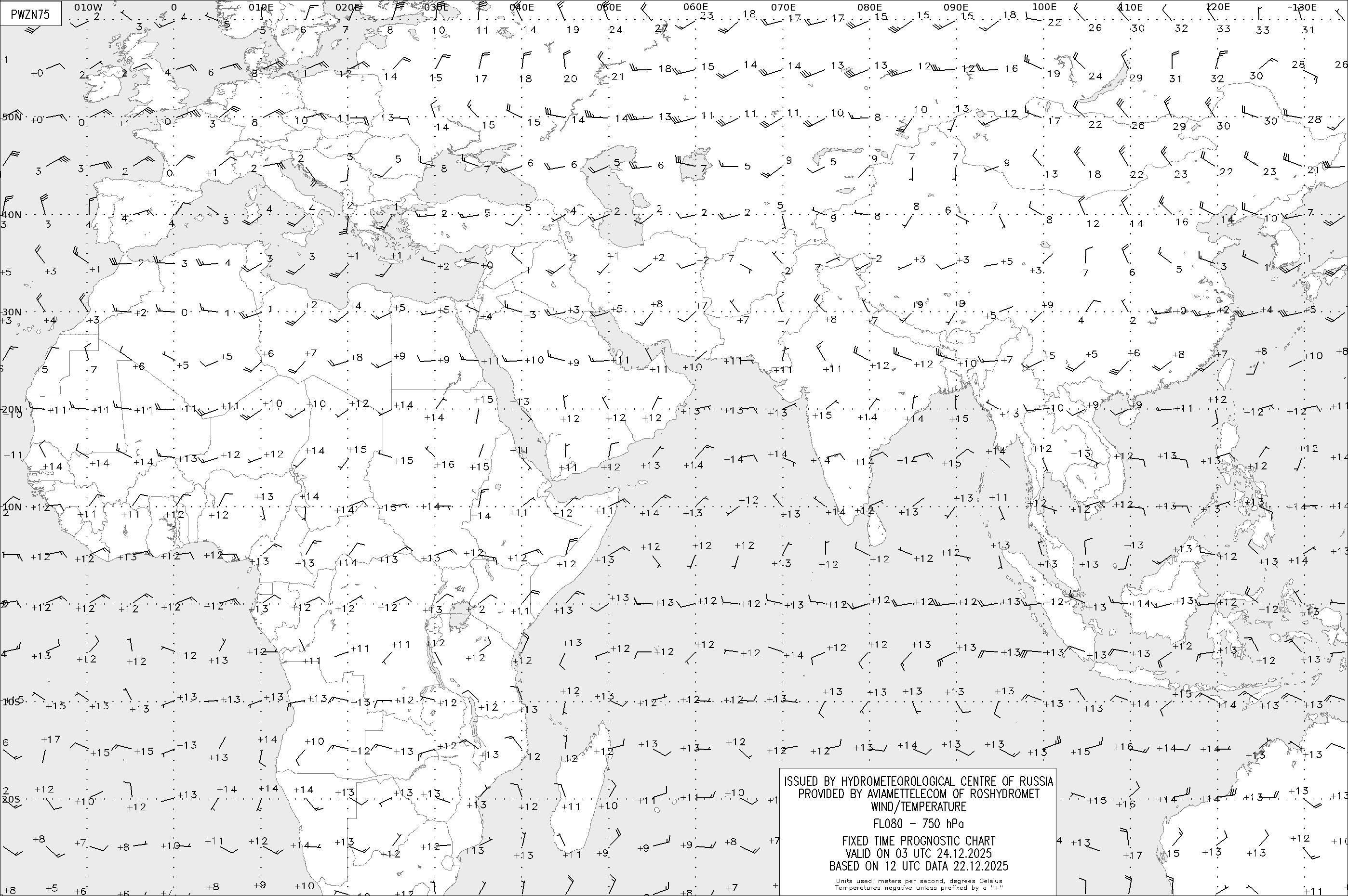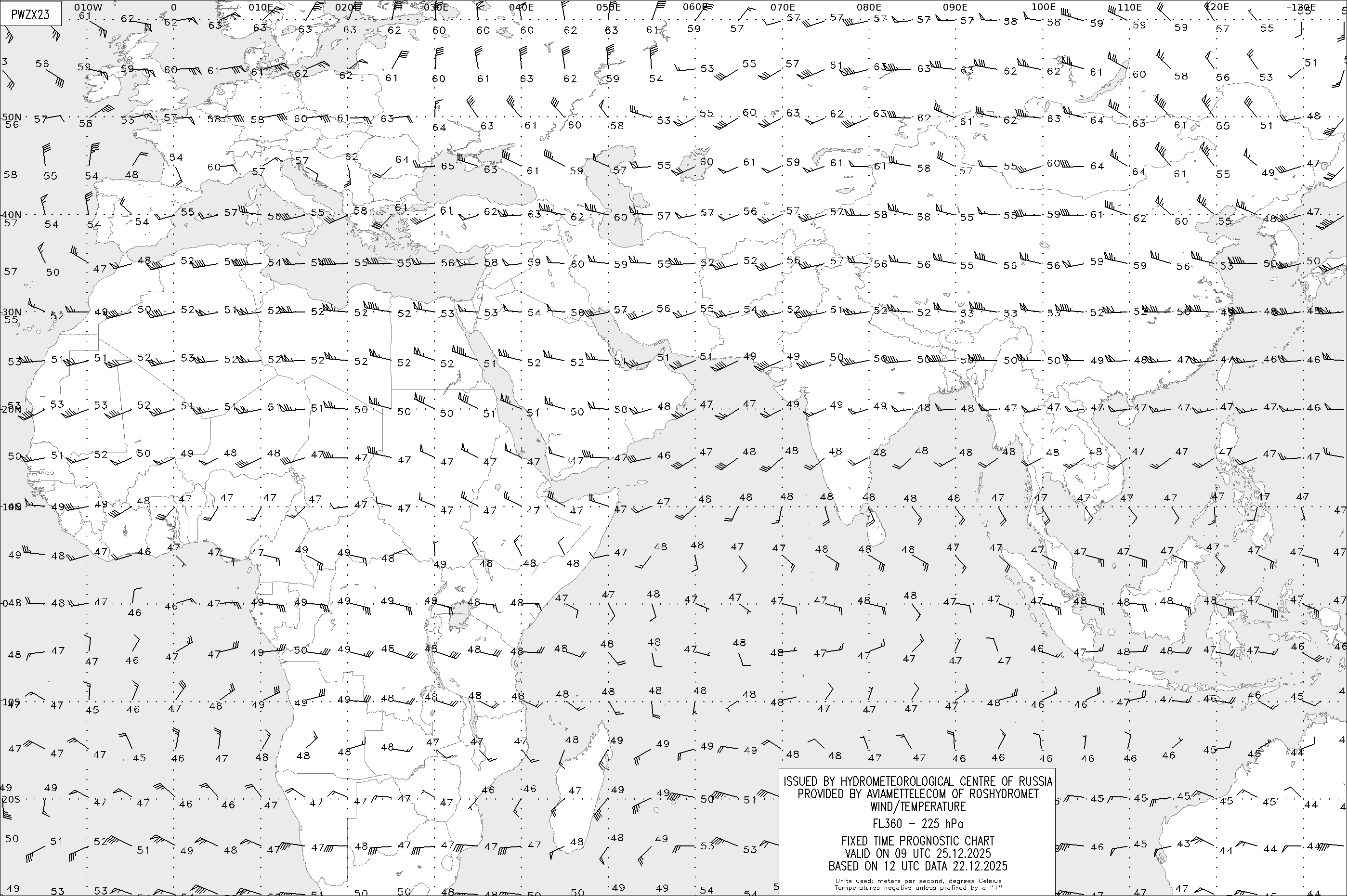 AREA Z (Евразия и Африка) по данным за 12 UTC 22.12.2025