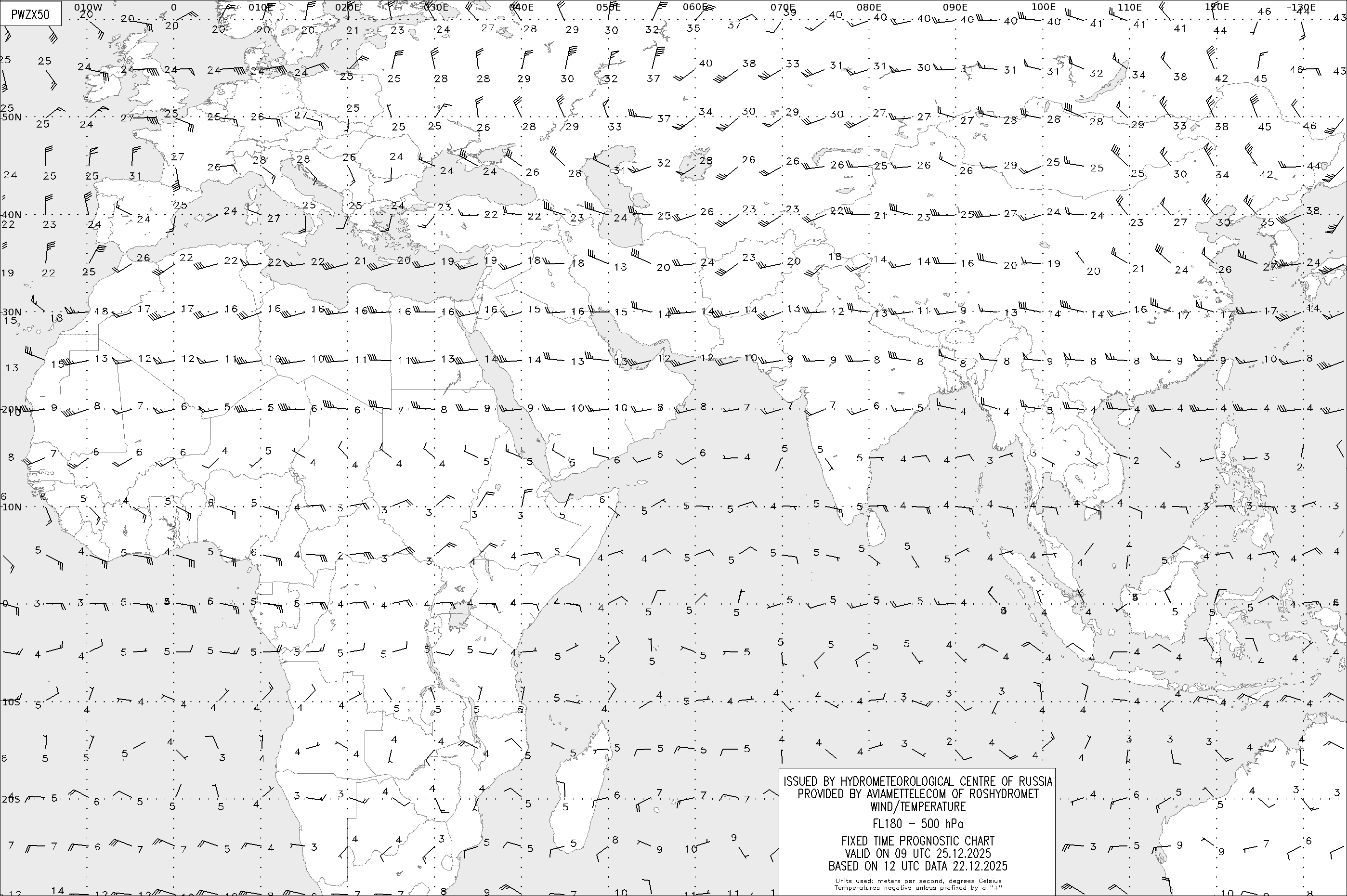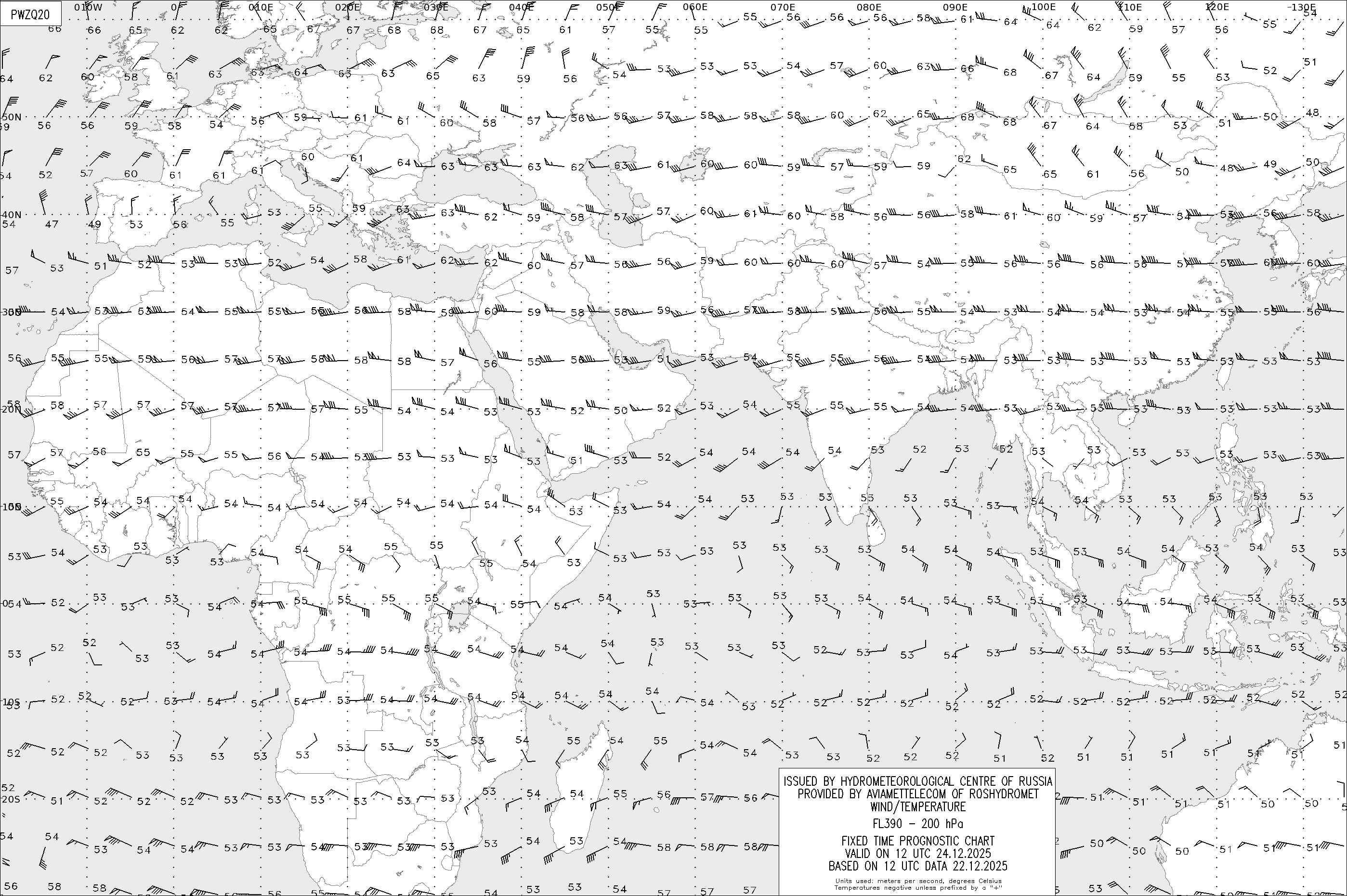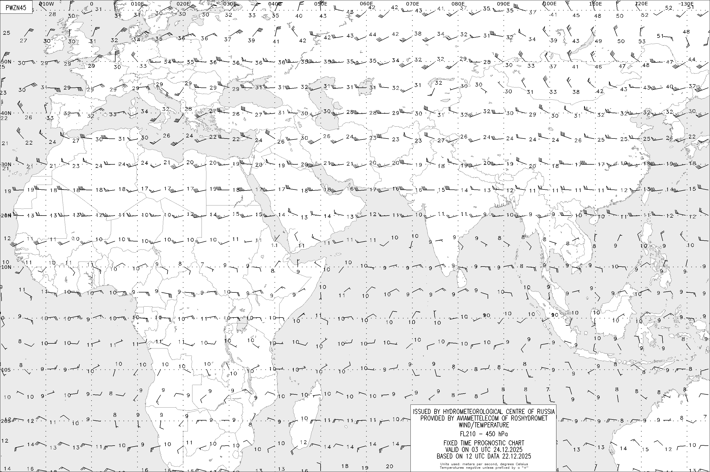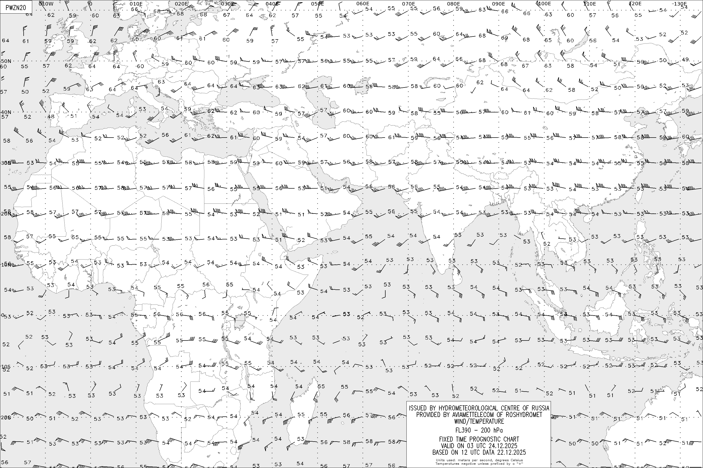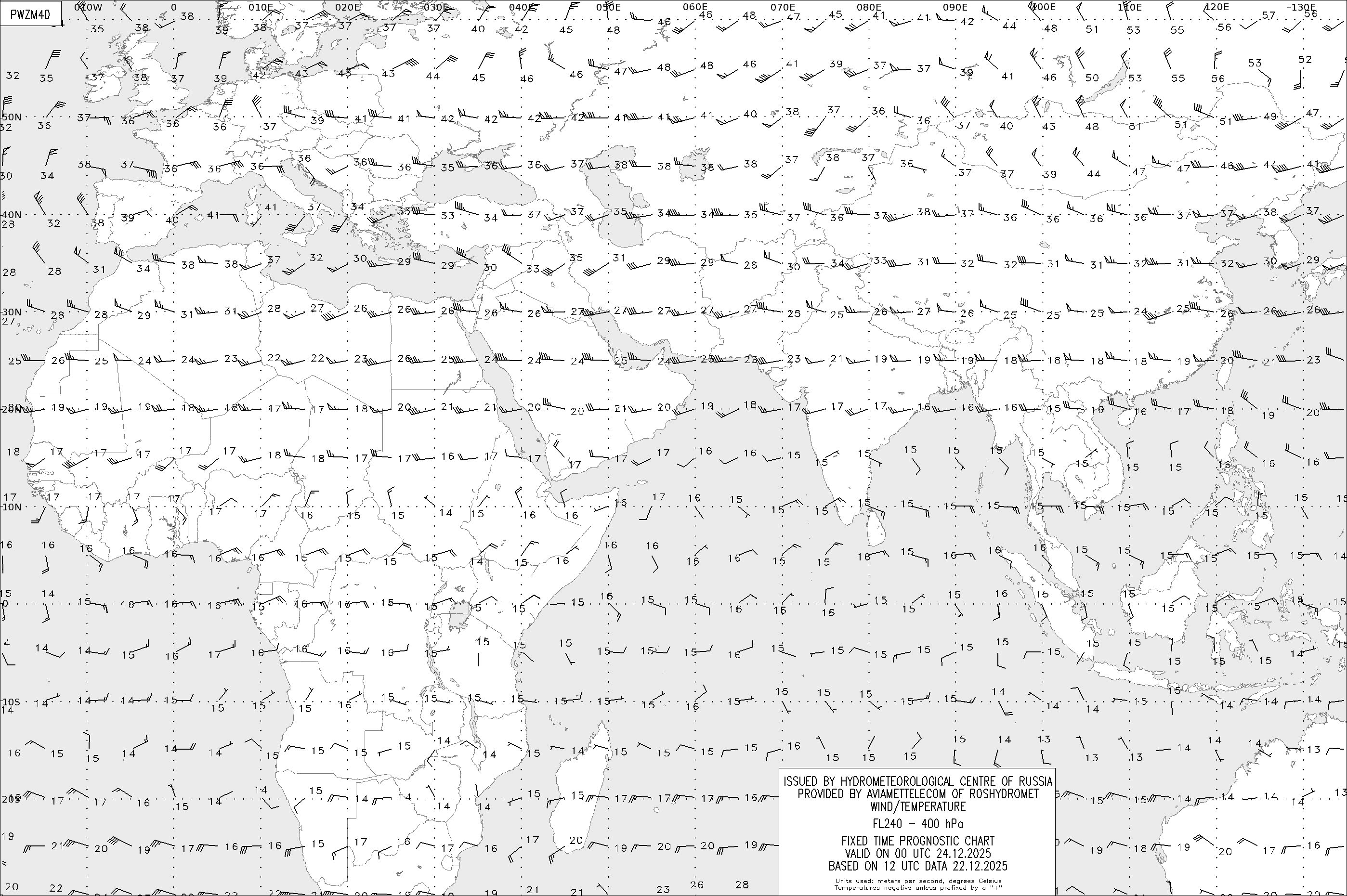 AREA Z (Евразия и Африка) по данным за 12 UTC 22.12.2025