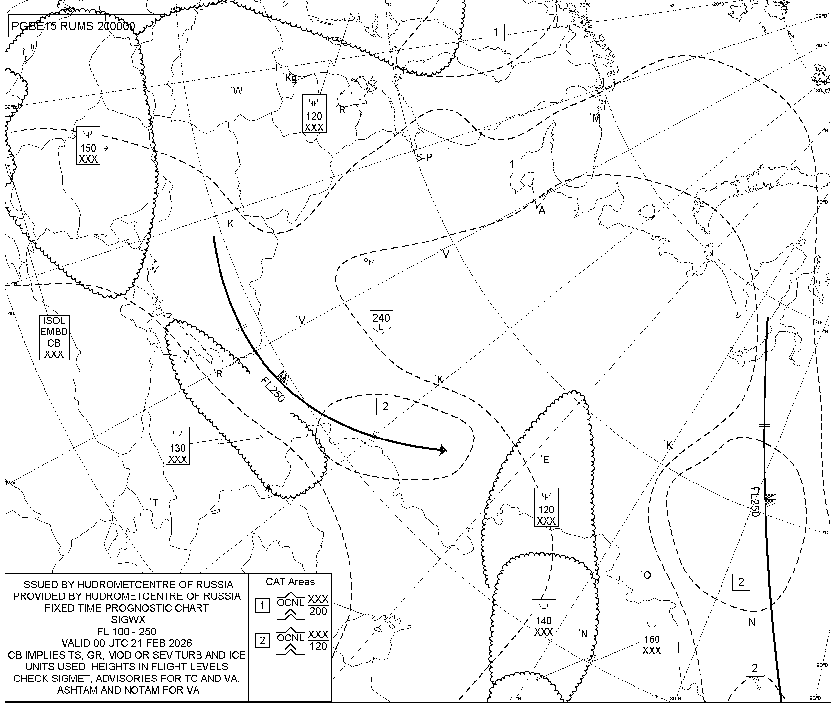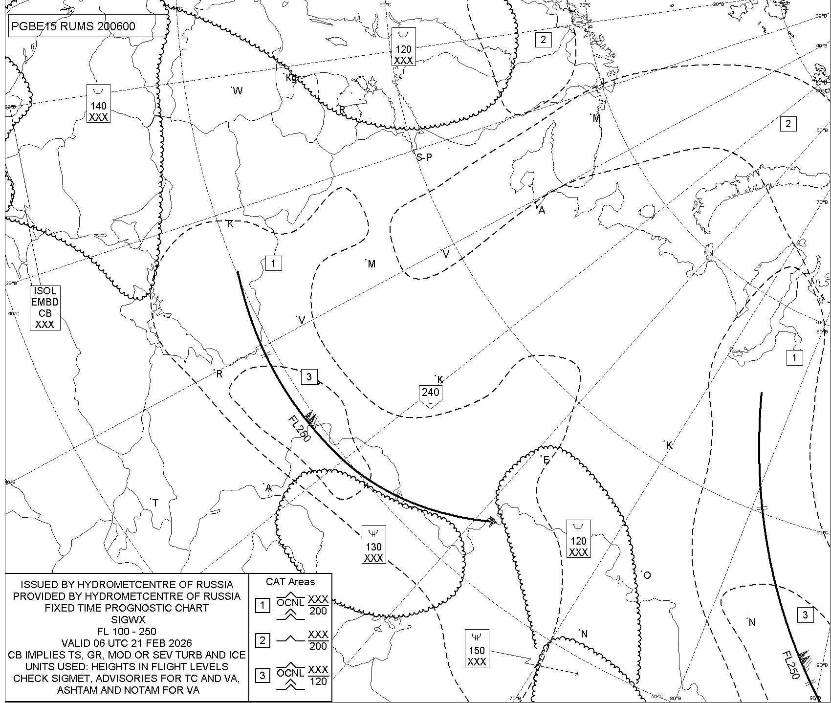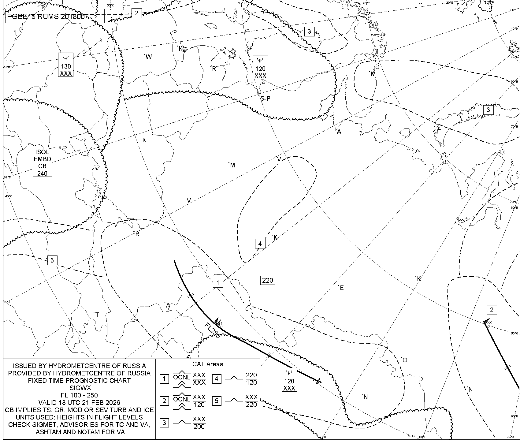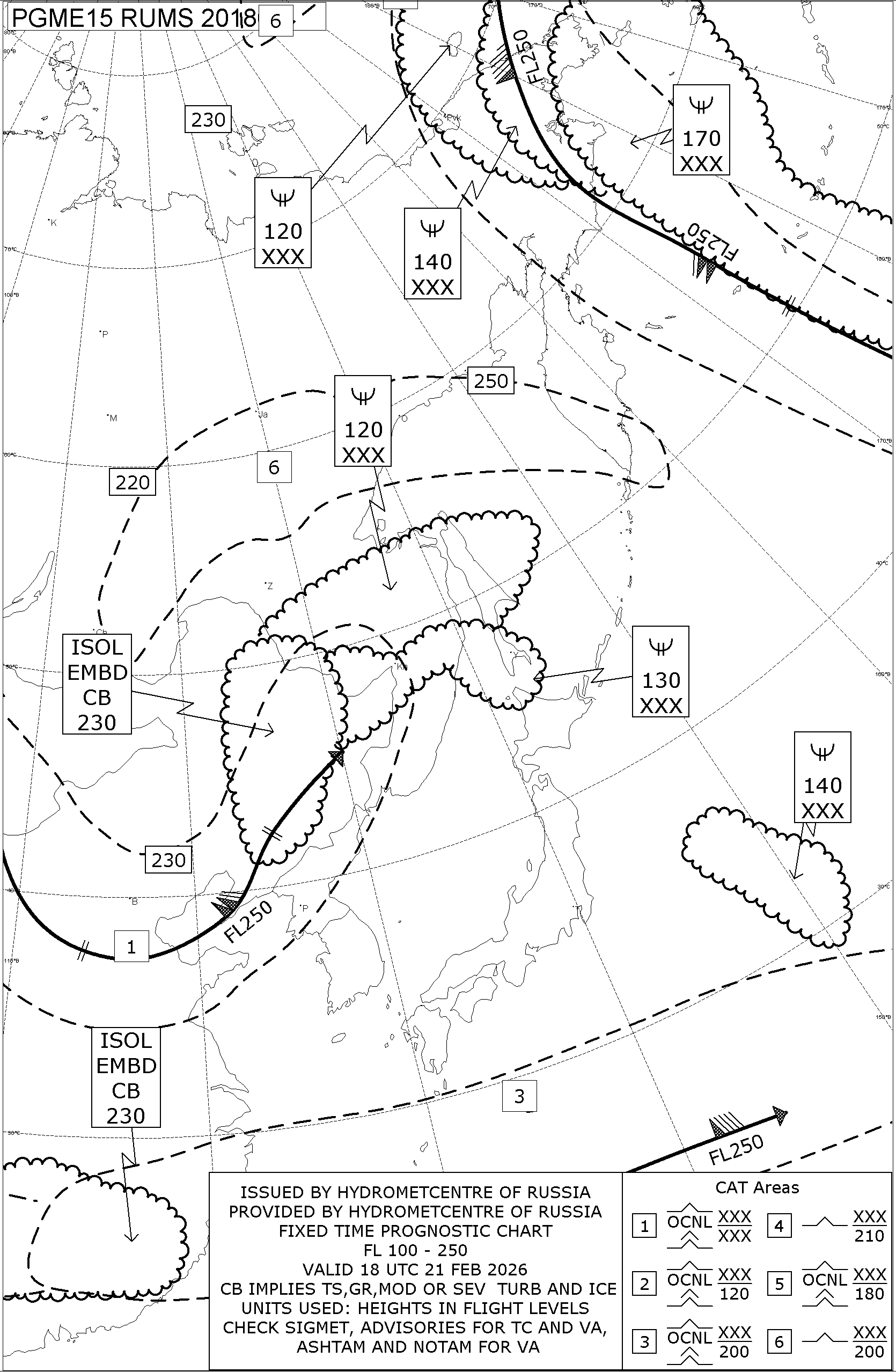 1.2 Среднего уровня в виде карт SWM для слоя FL100-FL250 на трех бланках, охватывающих воздушное пространство Российской Федерации с разбивкой на три региона: