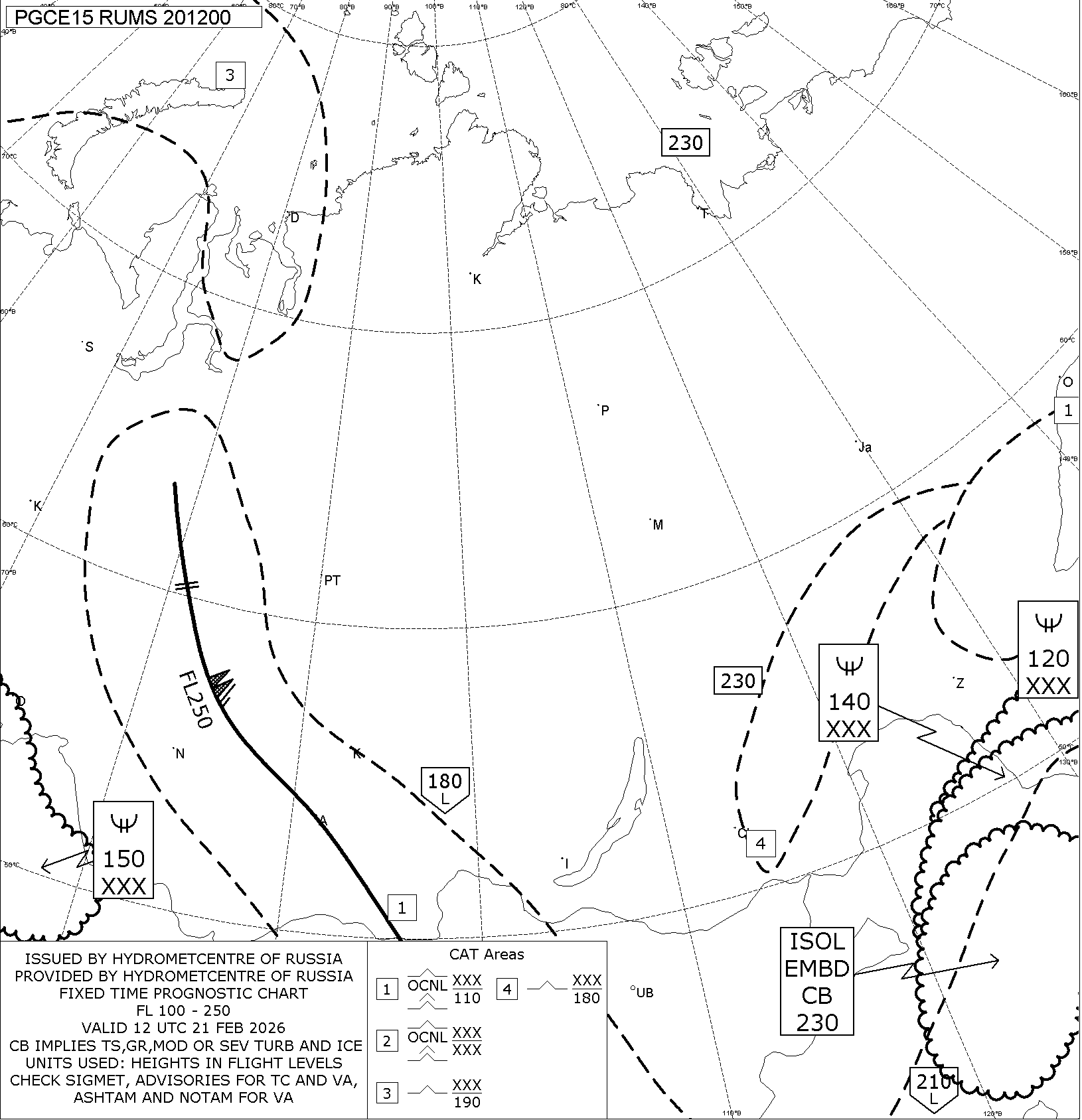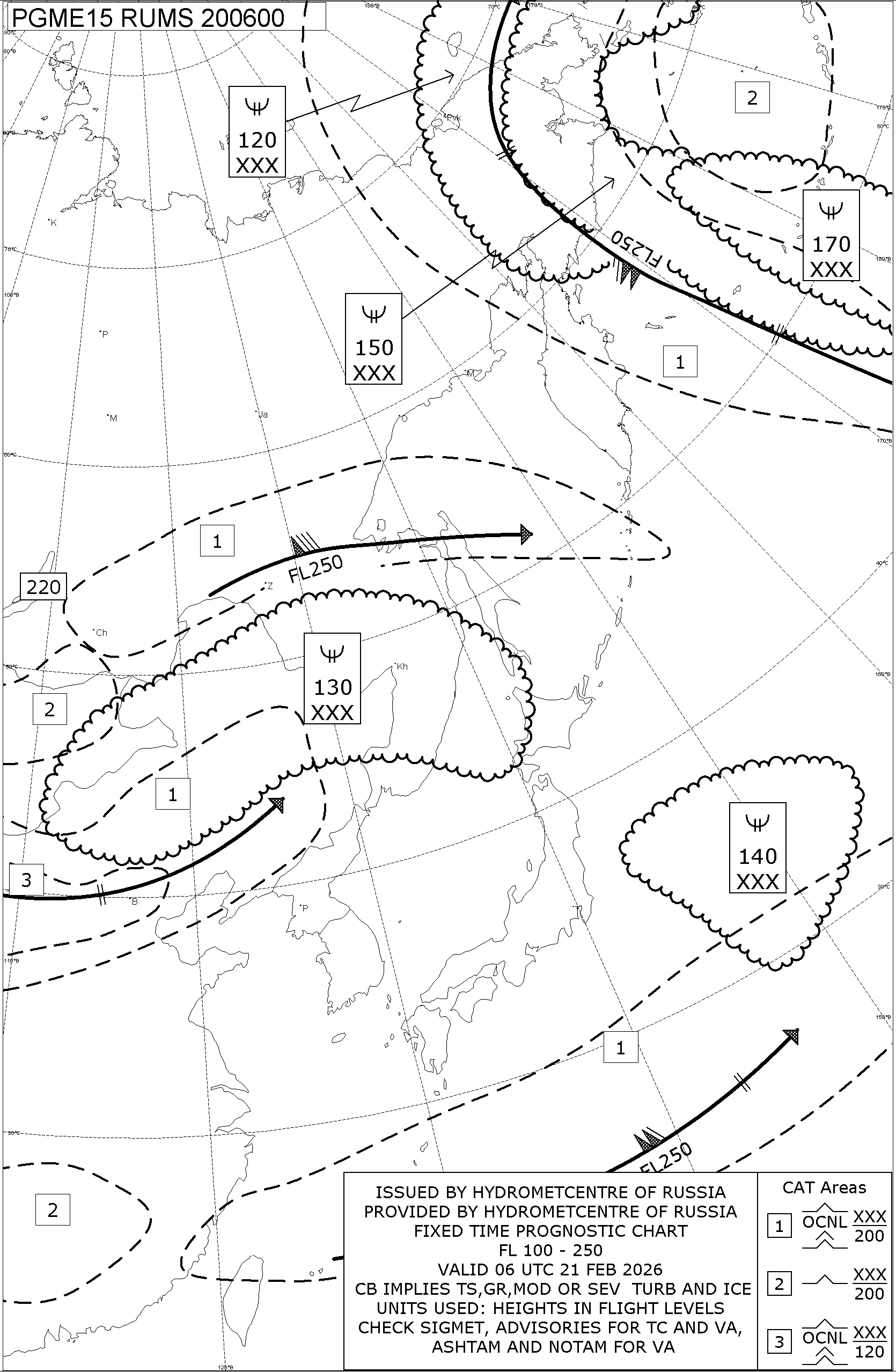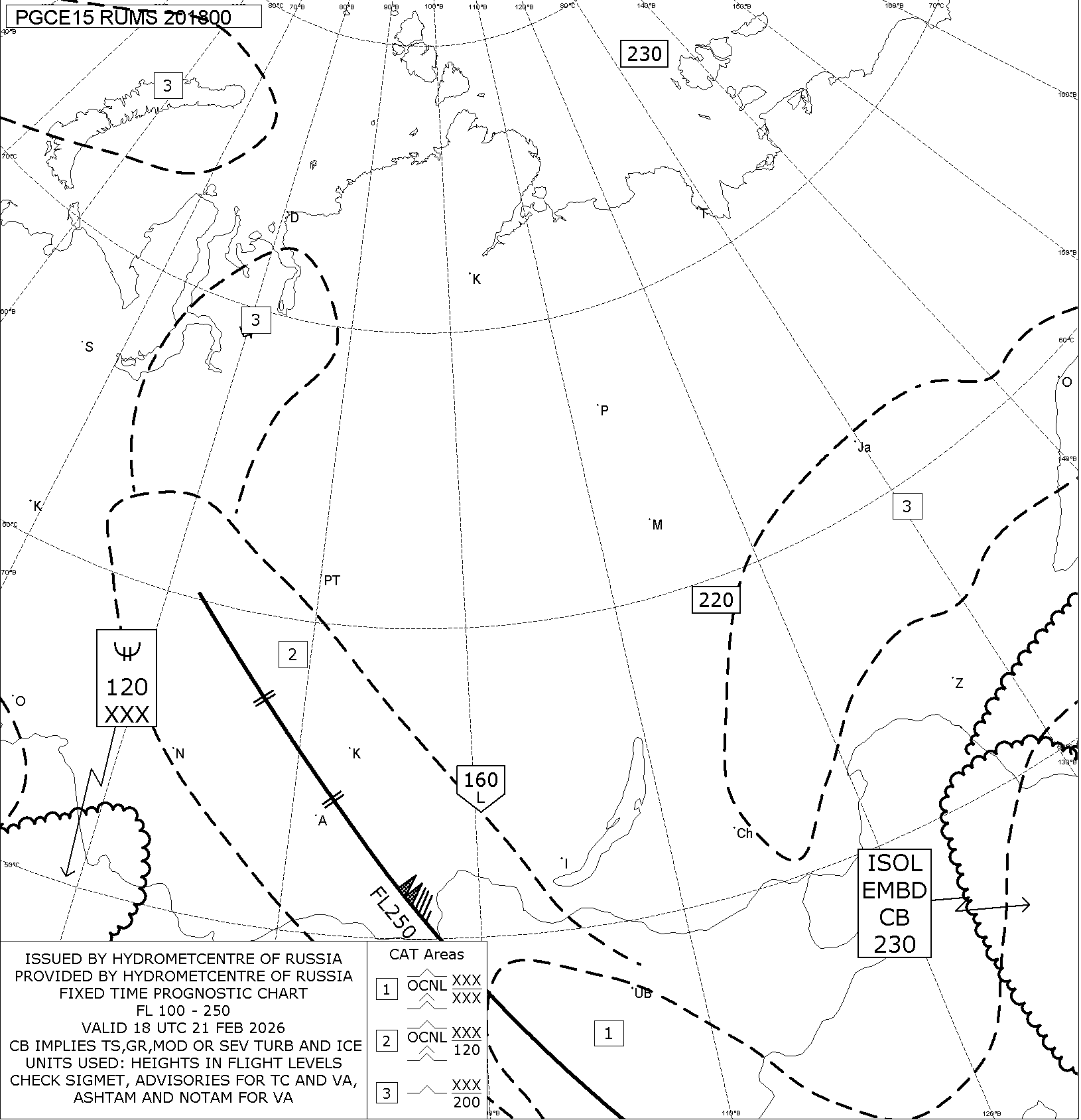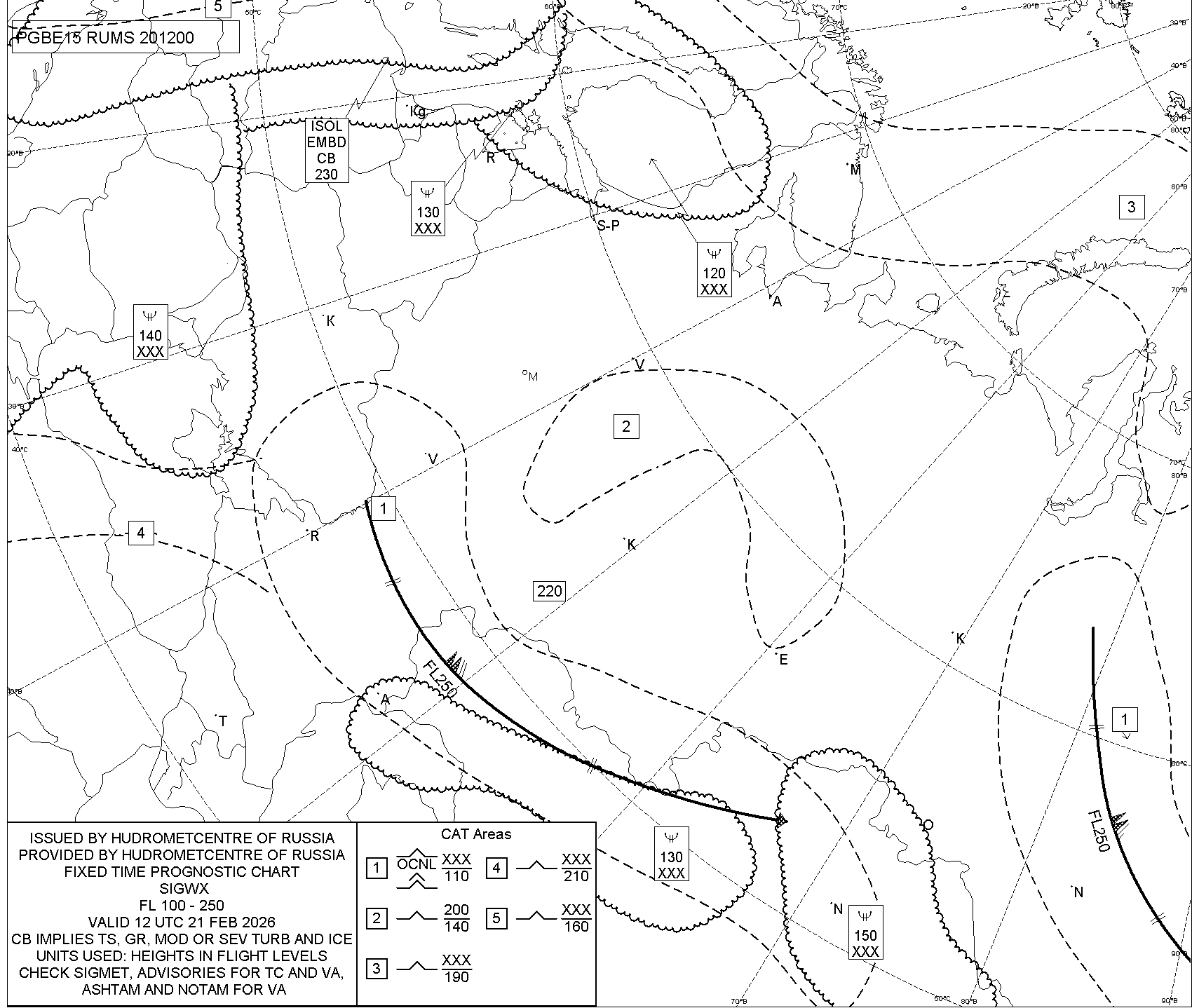 1.2 Среднего уровня в виде карт SWM для слоя FL100-FL250 на трех бланках, охватывающих воздушное пространство Российской Федерации с разбивкой на три региона: