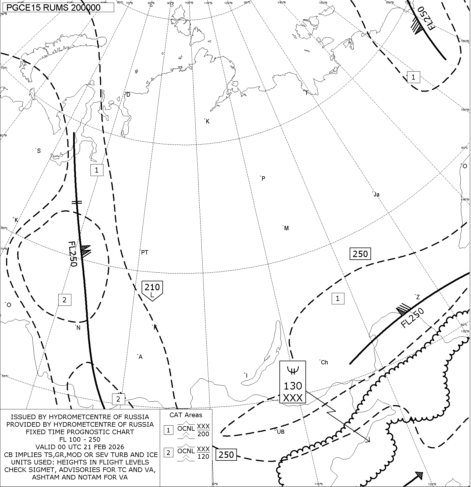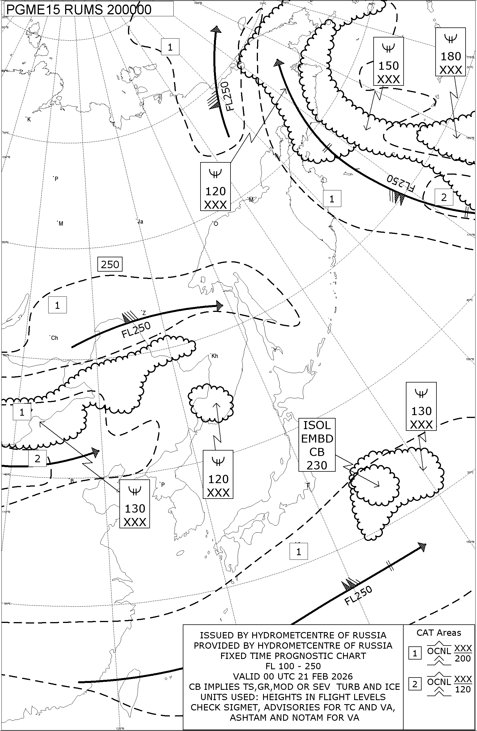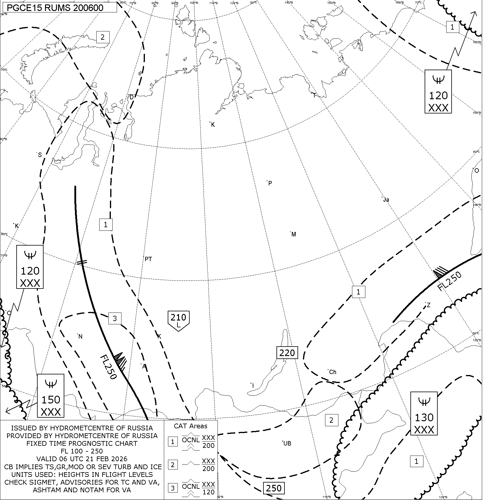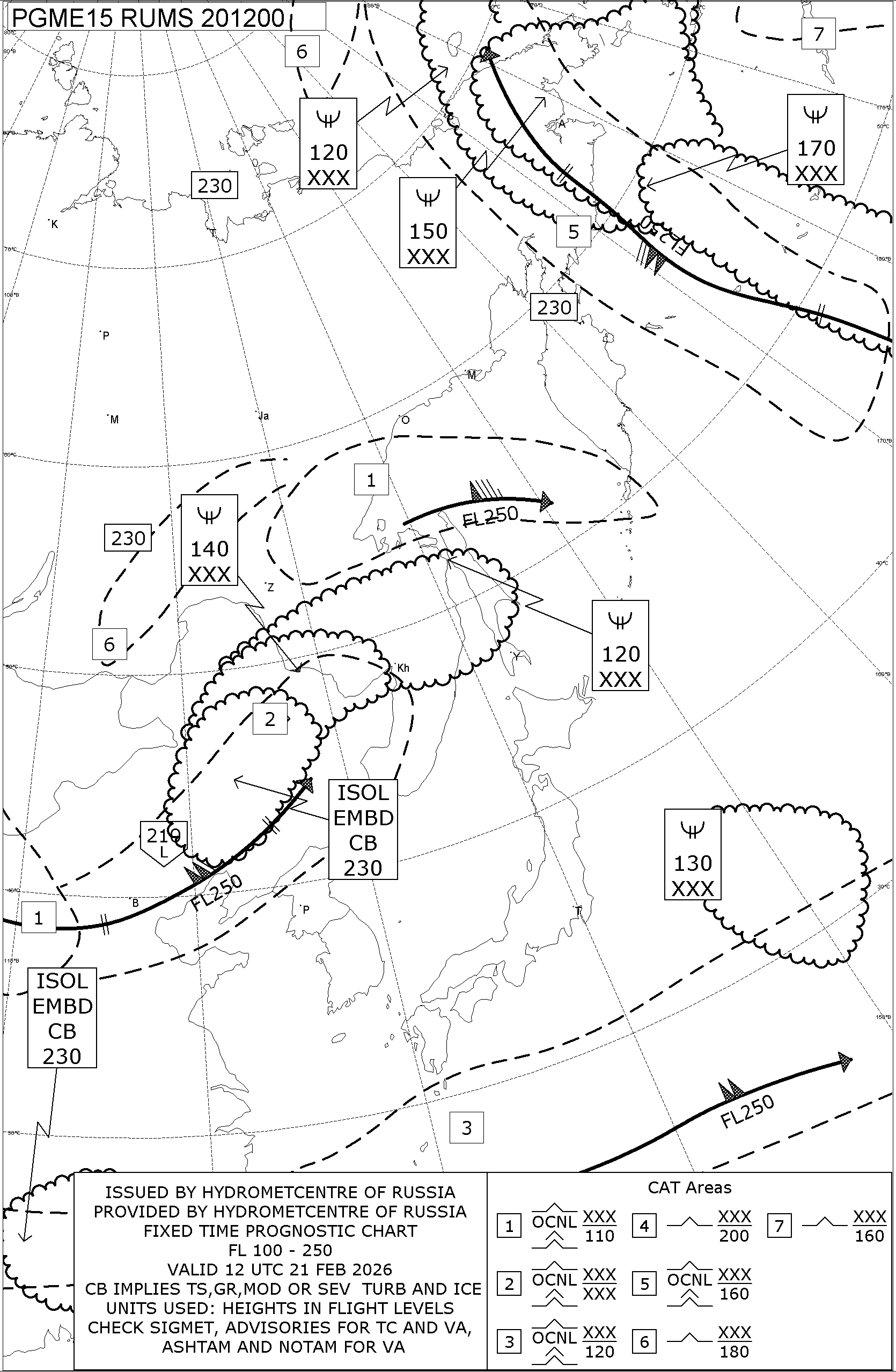 1.2 Среднего уровня в виде карт SWM для слоя FL100-FL250 на трех бланках, охватывающих воздушное пространство Российской Федерации с разбивкой на три региона: