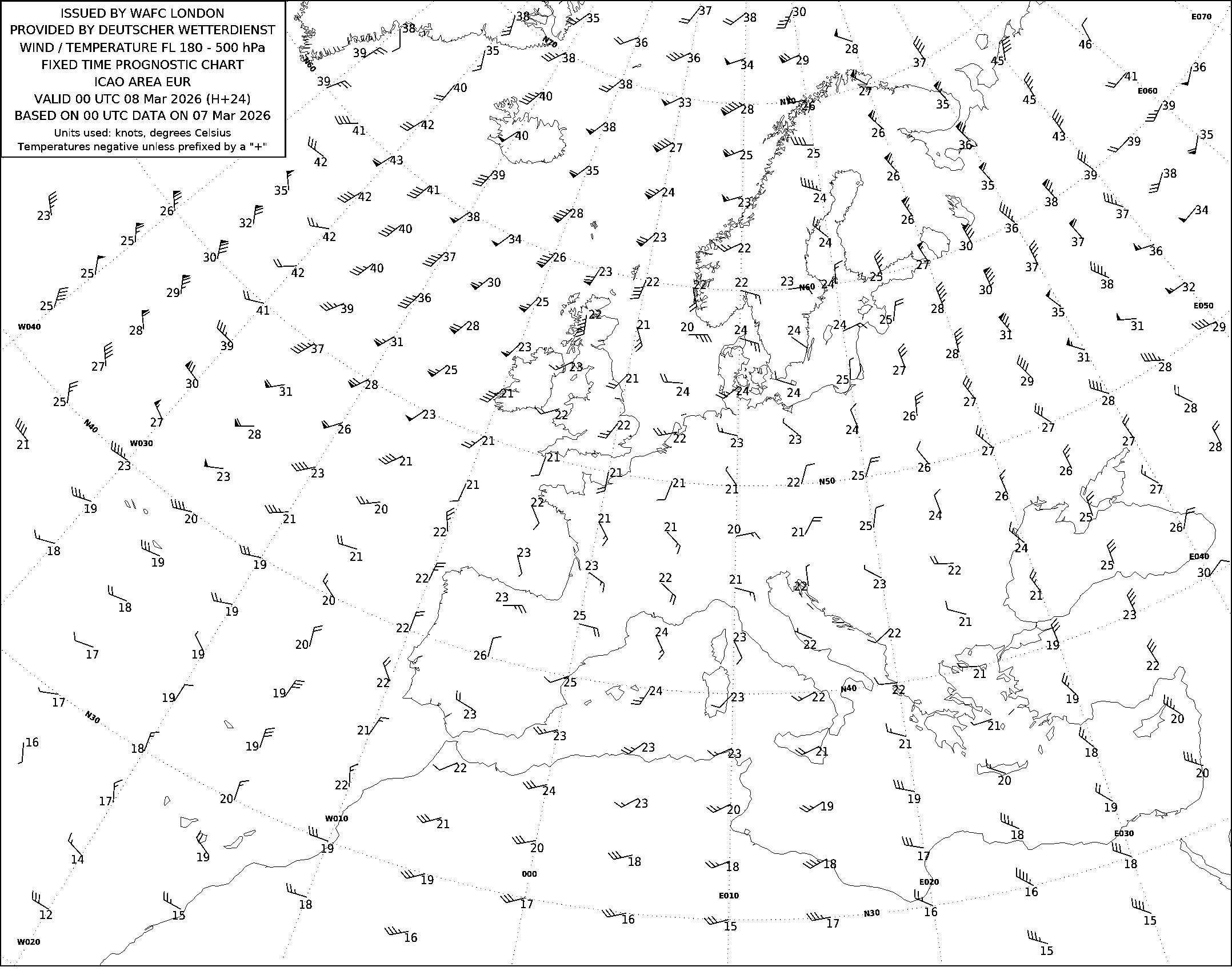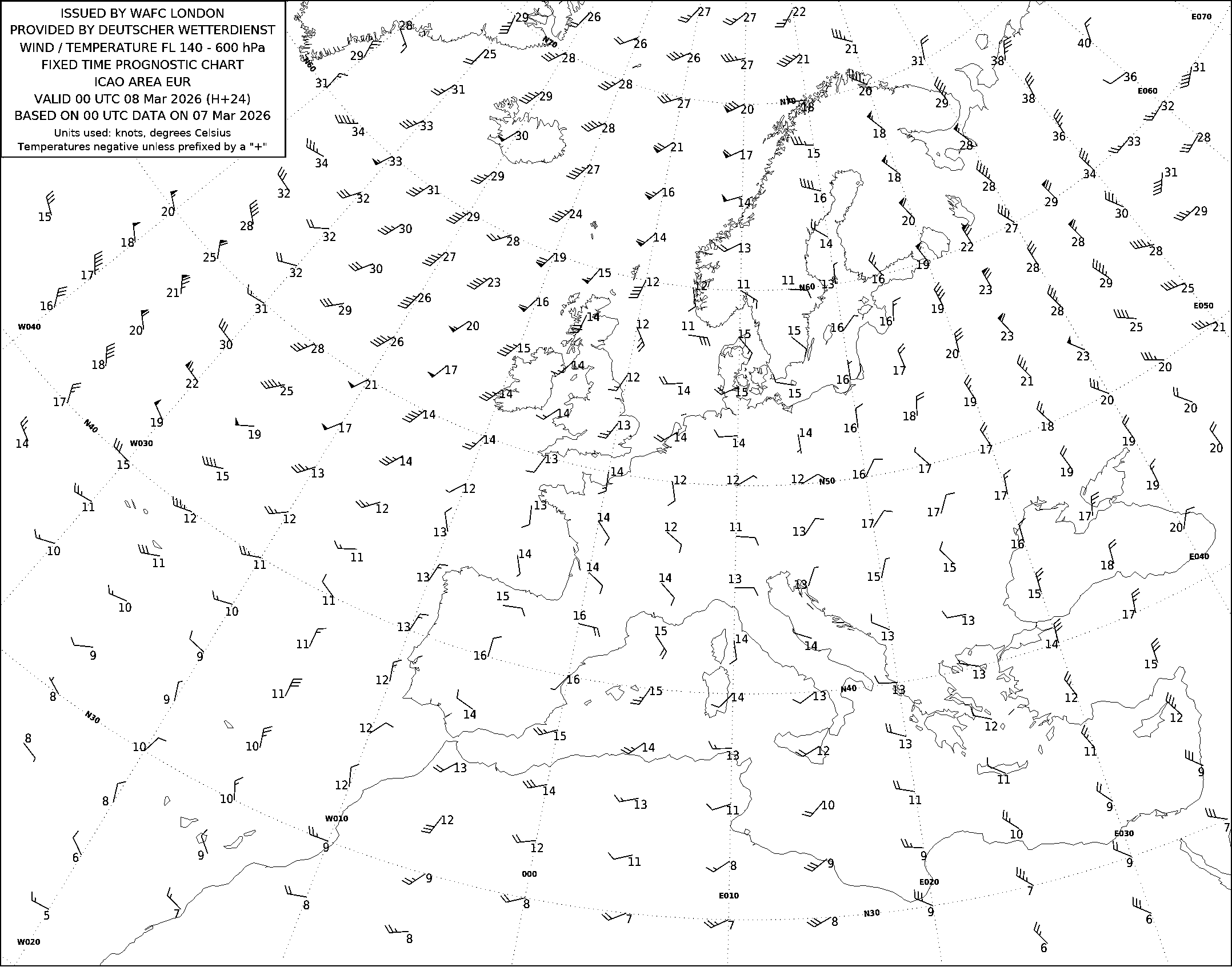 Прогнозы ветра и температуры ВЦЗП Лондон